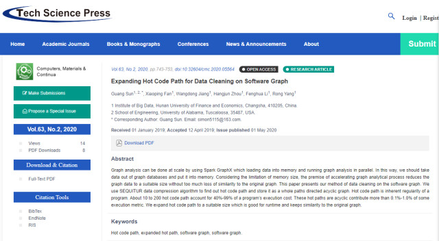 湖南日报·新湖南客户端4月21日讯(通讯员 孙光)日前,JCR一区期刊CMC(Computers, Materials & Continua)连续发表湖南财院副校长樊晓平教授领衔的财经大数据研究团队两篇研究论文Expanding Hot Code Path for...