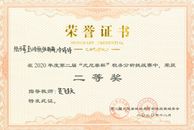 新湖南客户端12月16日讯(通讯员 贺飞跃)12月13日下午,第二届“尤尼泰杯”税务分析赛挑战赛决赛在湖南大学财院校区举行。由贺飞跃老师指导,陆子葶、张雨萌、冷诗诗、彭玲丽4名学生组成的best365中国官方网站代表...