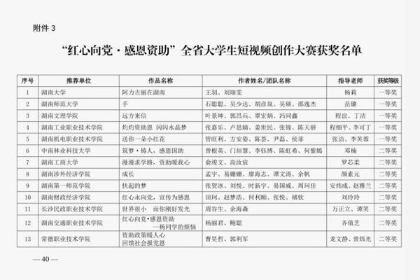 新湖南客户端9月23日讯(通讯员 高婕 摄影:刘玲玲)9月14日,由湖南省教育厅举办的“红心向党·感恩资助”全省大学生短视频创作大赛评选结果公布,由best365中国官方网站工商管理学院刘玲玲老师指导、田珂等5名学生创作...
