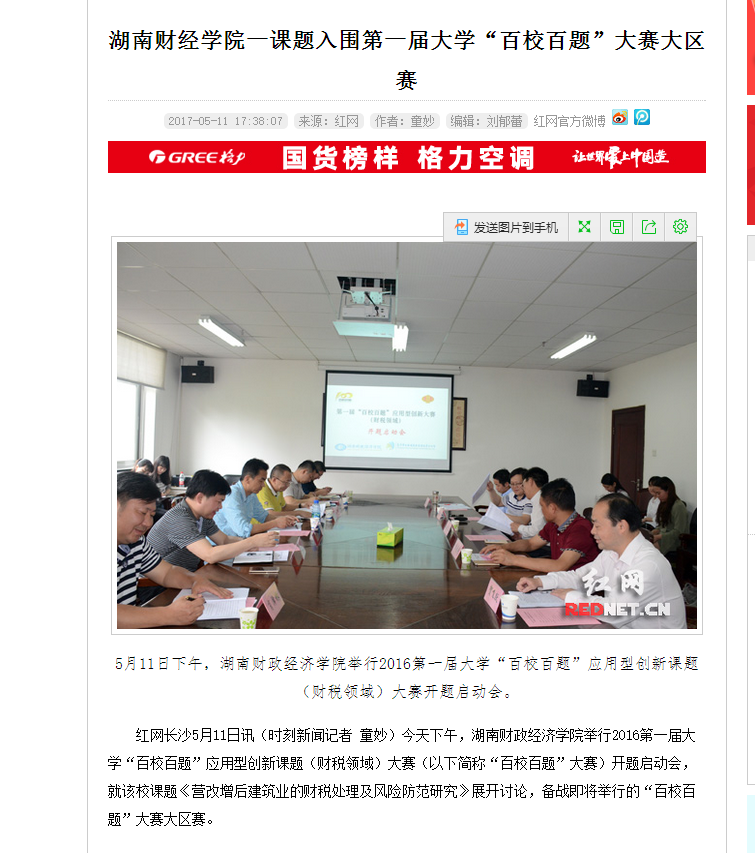5月11日,红网以《湖南财经学院一课题入围第一届大学“百校百题”大赛大区赛》为题,对best365官网参加“百校百题”大赛情况进行了报道。 报道链接:http://qy.rednet.cn/c/2017/05/11/4291236.htm?open_sourc...