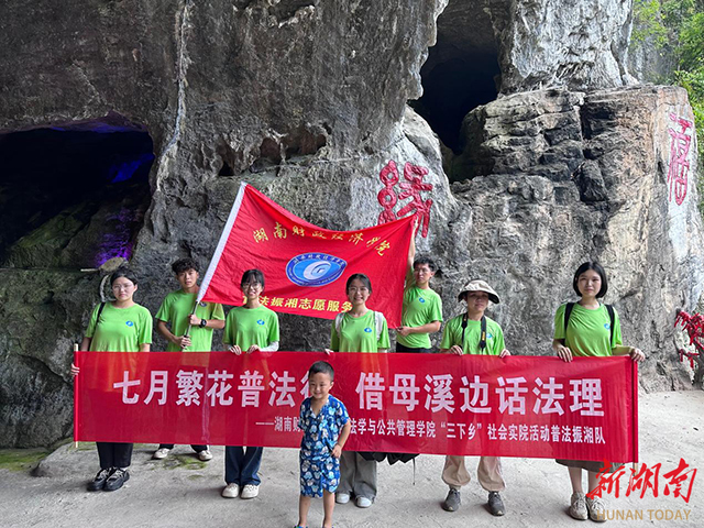 近日,best365中国官方网站“普法振湘队”来到怀化市沅陵县旅游发展示范景区——借母溪村保子洞景园,开展“三下乡”旅游发展专题调研活动。(图为普法振湘队队员与保子洞前合影)“借母溪保子洞已经发展成了集观光旅游...