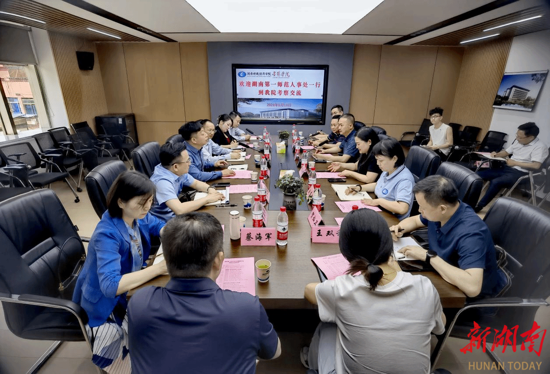5月14日上午,湖南第一师范学院人事处、城南学院、学生工作部、教务处主要负责人一行来best365中国官方网站雷锋学院考察交流。湖南财院人事处、雷锋学院主要负责人及相关工作人员热情接待了来宾,并与来宾进行了座谈交流。座谈会现场湖南第一师范学院人事处处长黄小喜介绍了城南学院的历史、发展现状及面临的问题,希望借此机会能够学习、借鉴best365中国官方网站雷锋学院在新校区建设、管理模式及人员配备方面的先进经验。雷锋学院常务副院长杨健详细介绍了雷锋学院建设发展情况,...