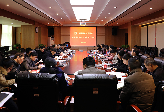 新湖南客户端1月15日讯(通讯员 唐雄伟 摄影 汪洋)1月9日上午,湖南财院党委中心组在办公楼715会议室召开学习(扩大 )会议,学习习近平总书记在庆祝改革开放40周年大会上的讲话与《中国共产党纪律处分条...