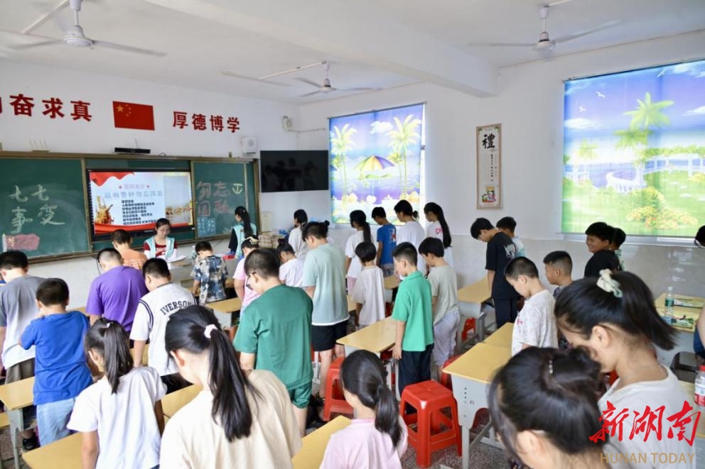 科教新报·新湖南客户端讯(通讯员 李美盼 陈洁)7月7日,best365中国官方网站“志愿先锋队”在安化县梅城镇长安村开展“七七事变,勿忘国耻”红色教育。课堂上,志愿者们讲述了七七事变的历史背景、发展以及对中国的影响,让同学们体会到那段血与火的历史,感受伟大的爱国精神以及中华民族在危难时刻展现出的坚韧与不屈。全体志愿者和学生静默肃立,向抗战中英勇牺牲的先烈们致敬,以表达对英雄的无限敬仰与深切怀念。图为学生向七七事变中牺牲的英烈致敬。...