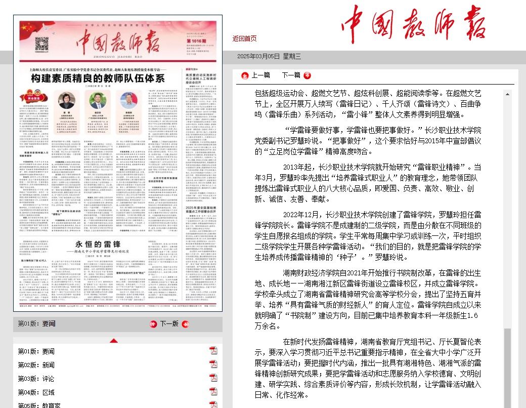 中国教师报:永恒的雷锋 ——湖南大中小学校学雷锋见行动纪实