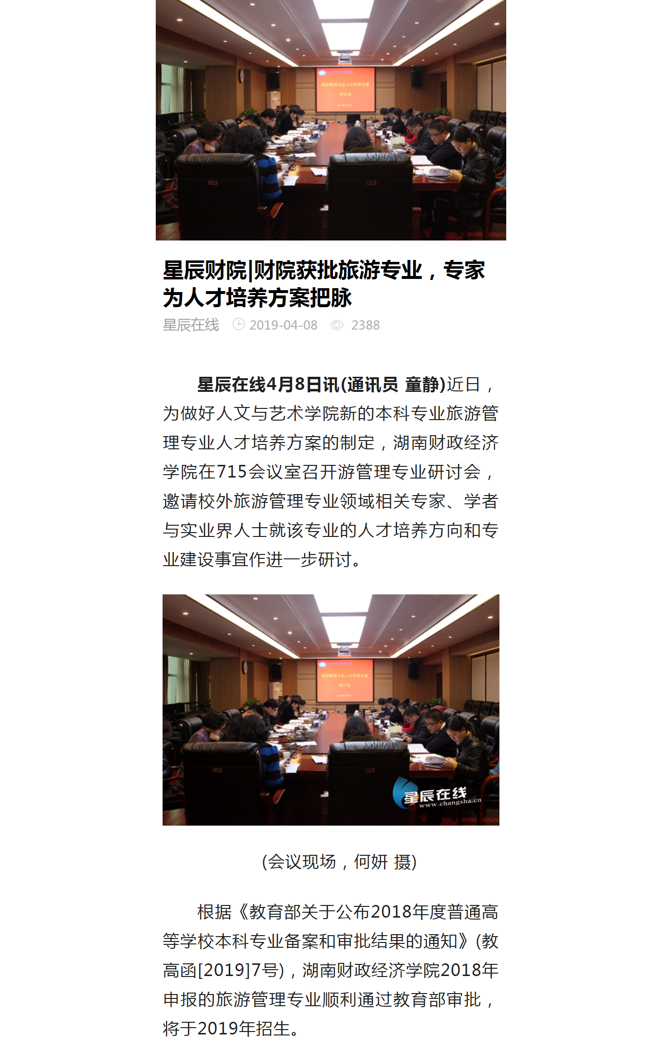 湖南日报·新湖南客户端4月8日讯(通讯员 童静 摄影 何妍)为做好人文与艺术学院新的本科专业旅游管理专业人才培养方案的制定,4月2日,湖南财院在715会议室召开游管理专业研讨会,邀请校外旅游管理专业领域相关专家、...