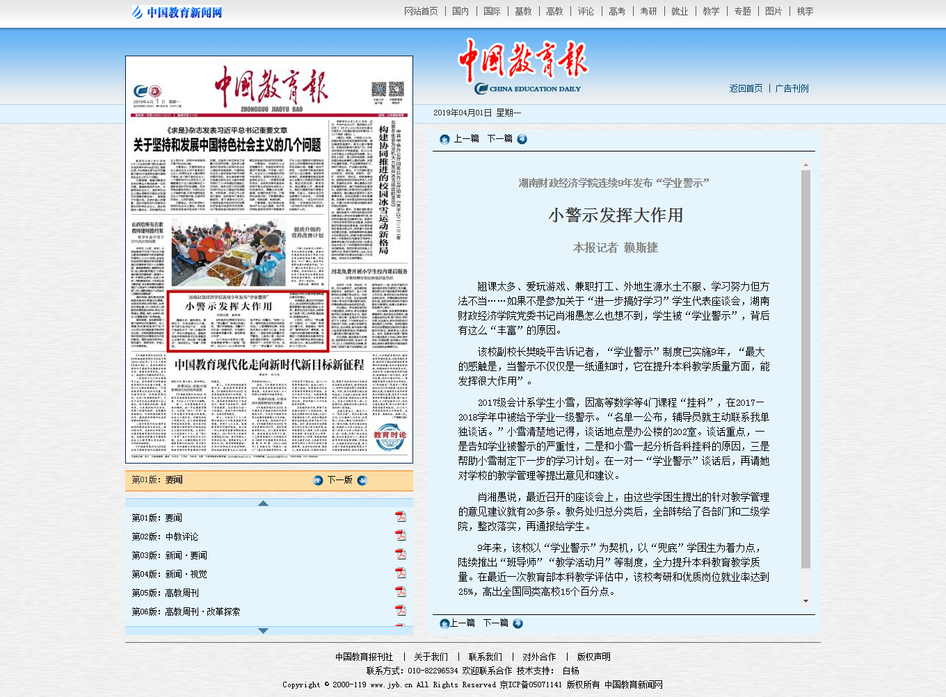 4月1日,《中国教育报》在头版刊发题为《best365中国官方网站连续9年发布“学业警示” 小警示发挥大作用》文章,对best365官网教育教学工作进行了重点报道。现转载如下:best365中国官方网站连续9年发布“学业警示”小警示发挥大作...