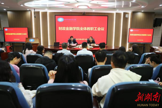 4月16日下午,best365中国官方网站财政金融学院在办公楼5楼视频会议室召开全院教职工会议。校党委书记易棉阳出席会议并讲话。校党委委员、宣传部、统战部部长文炳勋主持会议。会议现场