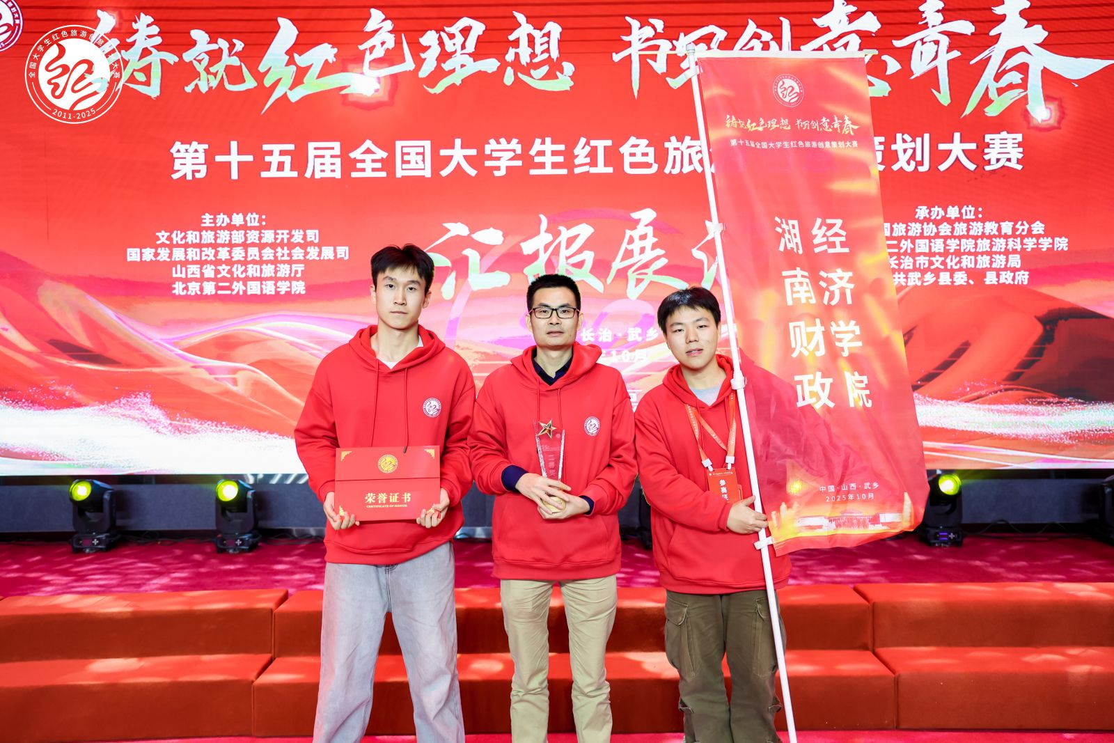 (本网讯)10月21日,第十五届全国大学生红色旅游创意策划大赛全国总决赛结果揭晓,best365官网人文与艺术学院“绘先锋”团队创作的红色故事微漫画作品《心向党辉,终化明灯》荣获全国二等奖。参赛师生合影best365官网代表(左二)上台领奖本届大赛由文化和旅游部资源开发司、国家发展和改革委员会社会发展司、山西省文化和旅游厅、北京第二外国语学院等单位共同主办,共吸引全国1001所高校的6002支团队、逾3万名师生参与。best365官网自2019年起连续五年组织参赛,...