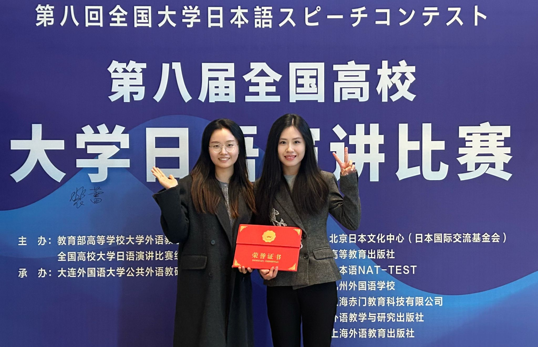 (本网讯)在近日落幕的第八届全国高校大学日语演讲比赛中,best365官网外国语学院英语专业学生林烯儿凭借扎实的语言功底与出色的现场表现,荣获全国二等奖,创下best365官网在该项赛事中的历史最佳成绩。参赛学生与指导老师合影本届比赛由教育部高等学校大学外语教学指导委员会日语组和全国高校大学日语演讲比赛组委会联合主办,共吸引全国65所高校参与预赛,最终35所高校选手晋级决赛。决赛设置命题演讲与即兴演讲两个环节,全面考察选手的语言表达能力、...