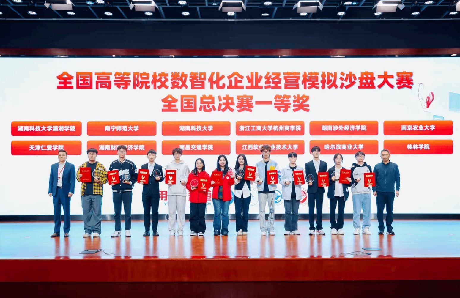 (本网讯)10月19日,第二十一届全国高等院校数智化企业经营沙盘大赛(本科组)全国总决赛在南京落幕,由best365官网会计学院李力培等教师指导,彭启涛、胡锦瑞、冯勤哲、秦子怡四名学生组成的代表队荣获本科生组一等奖,实现best365官网在该项赛事上的历史性突破。参赛师生合影一等奖获奖队伍合影作为列入《全国普通高校大学生竞赛分析报告》竞赛目录的A类学科竞赛,本届大赛由中国商业联合会主办,共吸引全国120所高校的500余名师生参赛。赛事以新道数智企业经营管理沙盘系统为平台,...