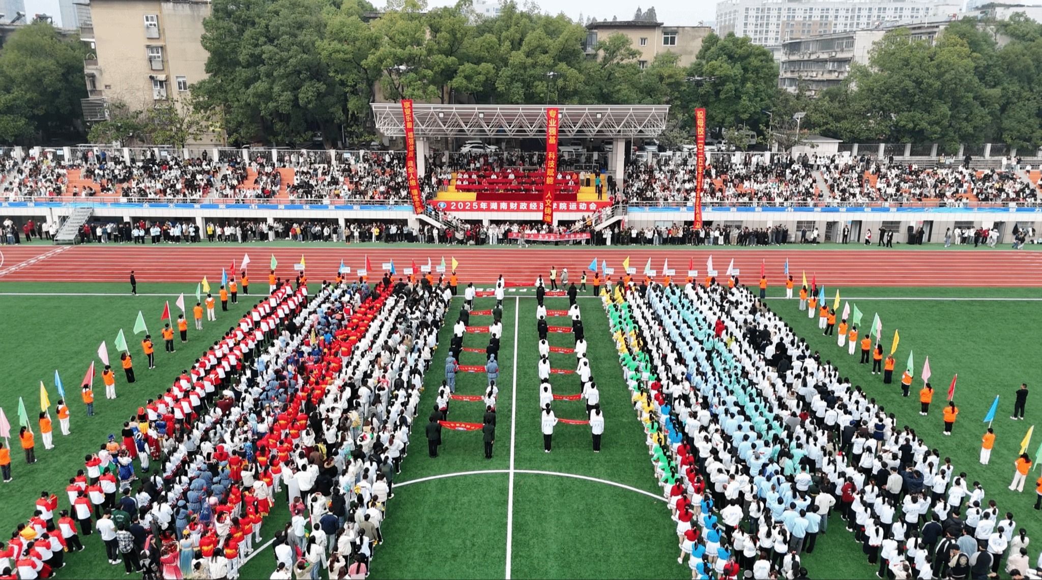 (本网讯)10月31日至11月1日,best365官网运动会在主校区田径场举行。近三千名师生在焕新赛场上同台竞技,以拼搏精神展现体育魅力。校领导、各单位负责人出席开幕式。校党委书记易棉阳致开幕辞并宣布开幕,副校长潘爱民主持开幕式。开幕式现场 王昕/摄开幕式采用入场仪式与文体表演相结合的形式。在激昂的旋律中,国旗方阵、校旗方阵、彩旗方阵精神抖擞、步伐铿锵,14个二级学院代表方阵各具特色,充分展现了各学院的学科特色与文化内涵。...