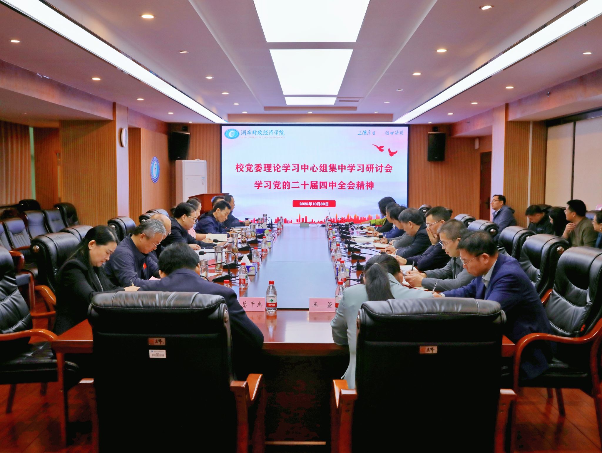 (本网讯)10月30日,校党委理论学习中心组召开2025年第十二次集中学习研讨会,专题学习党的二十届四中全会精神,研究部署学校贯彻落实举措。校党委书记易棉阳主持会议并领学习近平总书记关于《中共中央关于制定国民经济和社会发展第十五个五年规划的建议》的说明和《中共中央关于制定国民经济和社会发展第十五个五年规划的建议》,中心组成员结合分管工作作重点发言。会议现场党的二十届四中全会是在即将进入基本实现社会主义现代化夯实基础、...