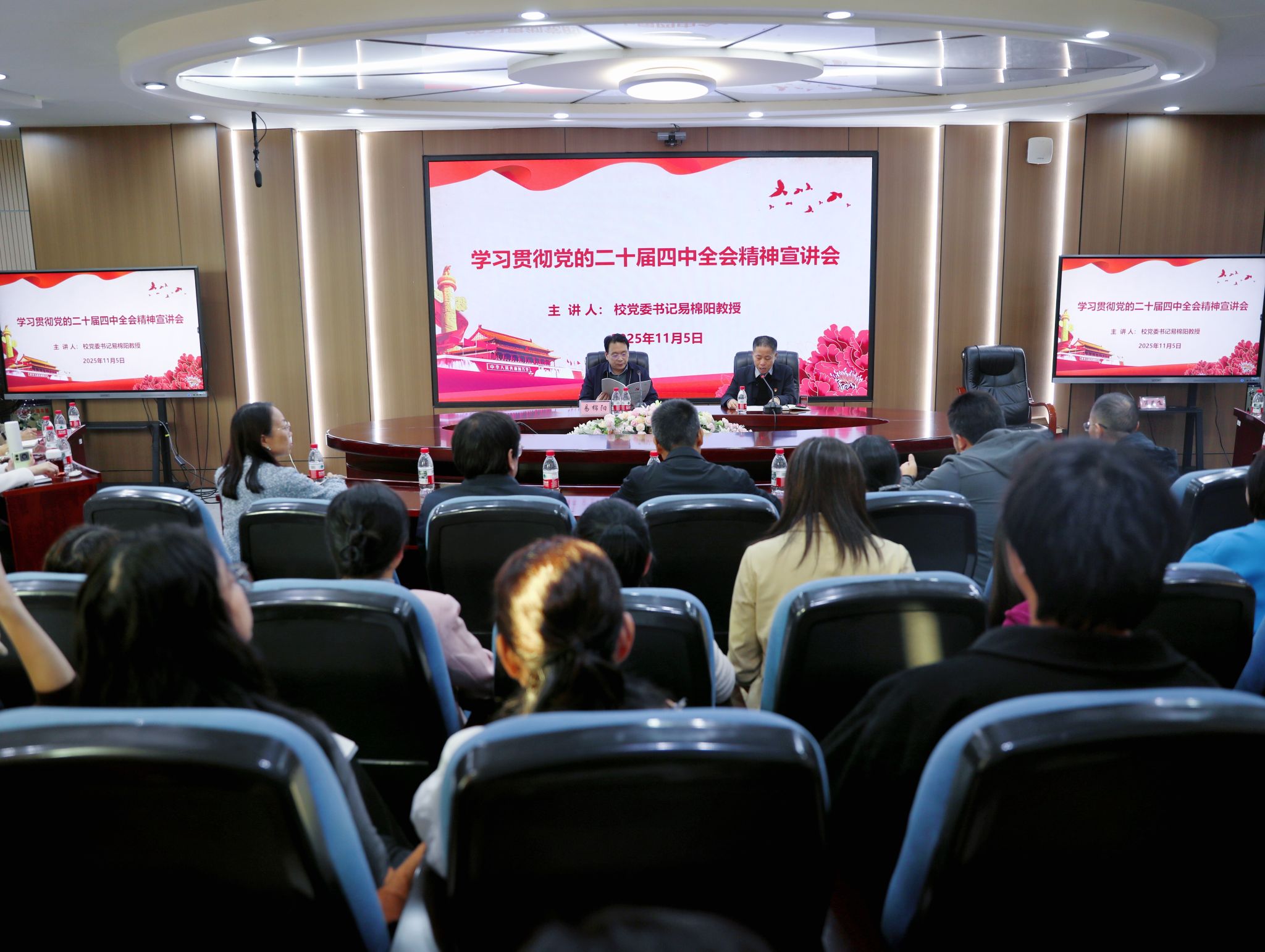 为深入学习宣传贯彻党的二十届四中全会精神,推动全会精神入脑入心,11月5日下午,校党委书记易棉阳在办公楼5楼视频会议室作党的二十届四中全会精神宣讲报告。宣传部、统战部、科研处、审计处、财政金融学院、经济学院师生代表参加学习。易棉阳宣讲党的二十届四中全会精神易棉阳从充分认识党的二十届四中全会的重大意义、深刻领会“十四五”时期我国发展取得的重大成就、准确把握我国五年规划的发展历程与历史意义、全面理解“十五五”...