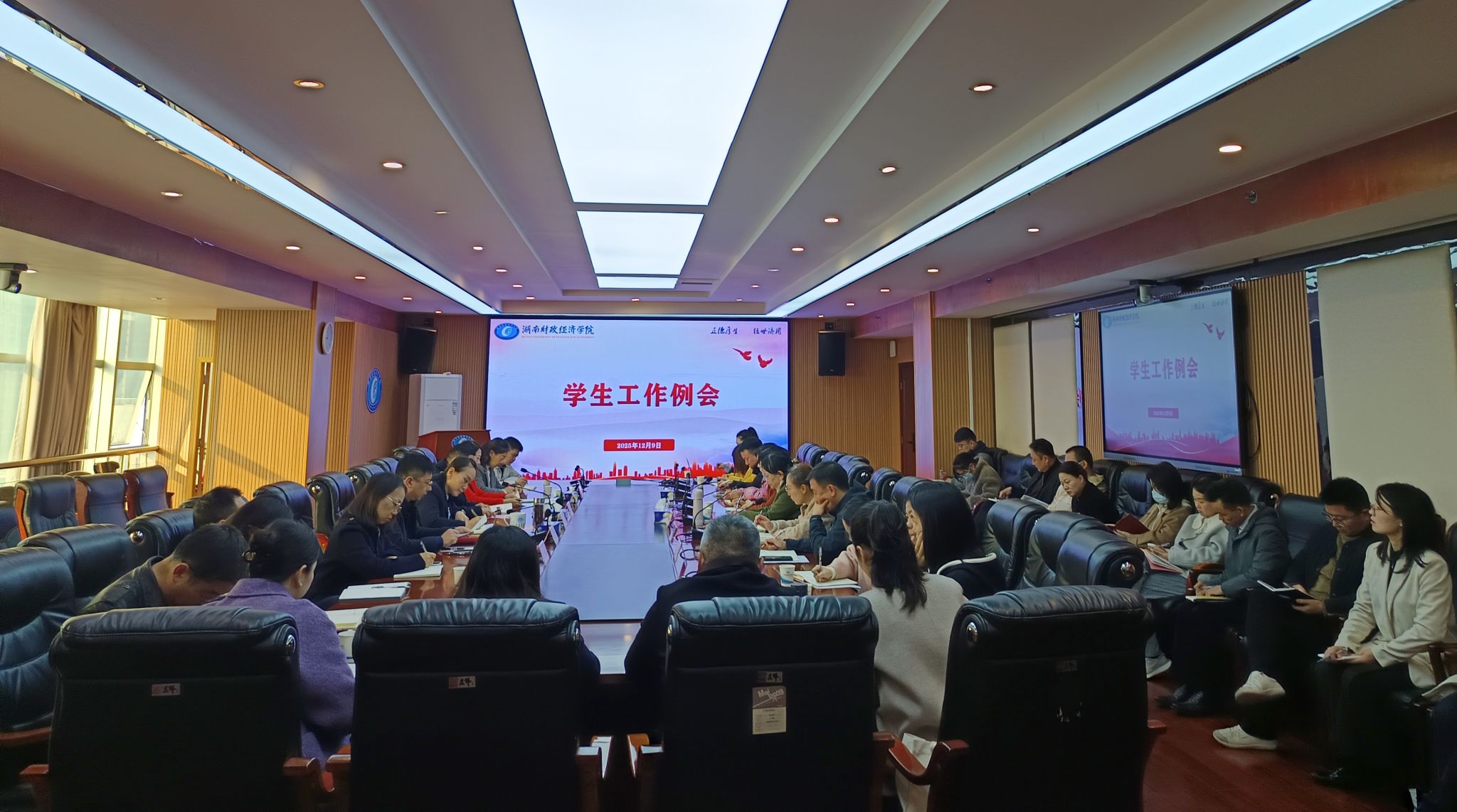 (本网讯)12月9日上午,学校在办公楼715会议室召开“深学全会精神,共促学风建设”学生工作例会。校党委副书记苏玲出席并讲话。学生工作部部长欧阳海峰主持会议,团委、学生工作部、各二级学院相关负责人参会。会议现场会上,雷锋书院、会计学院、工程管理学院、体育学院相关负责人结合本单位实际,围绕学习贯彻全会精神、强化学风建设的思路与举措作了交流发言。学生工作部负责人就近期学生资助、辅导员心理健康教育能力认证及调研等工作进行了部署,...