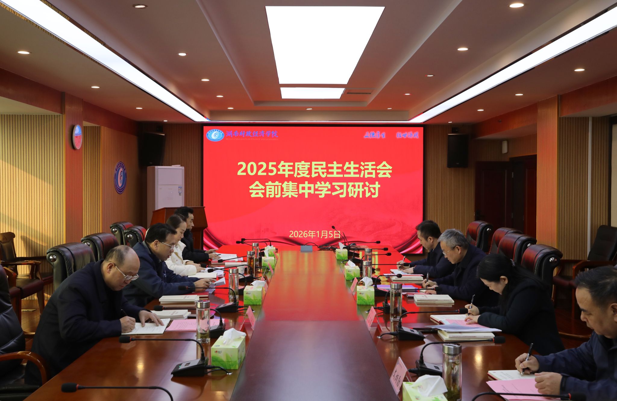 (本网讯)1月5日,校党委开展2025年度民主生活会会前集中学习研讨,全面贯彻落实党的二十届四中全会精神,锲而不舍落实中央八项规定精神,为高质量开好民主生活会打牢思想基础。党委书记易棉阳主持会议并讲话,全体校领导出席。会议现场会上,全体校领导集中学习了习近平总书记在2025年度中共中央政治局民主生活会上的重要讲话、在二十届中共中央政治局第二十一次集体学习时的重要讲话,《求是》杂志发表的习近平总书记重要文章《学习好贯彻好党的二十届四中全会精神》...
