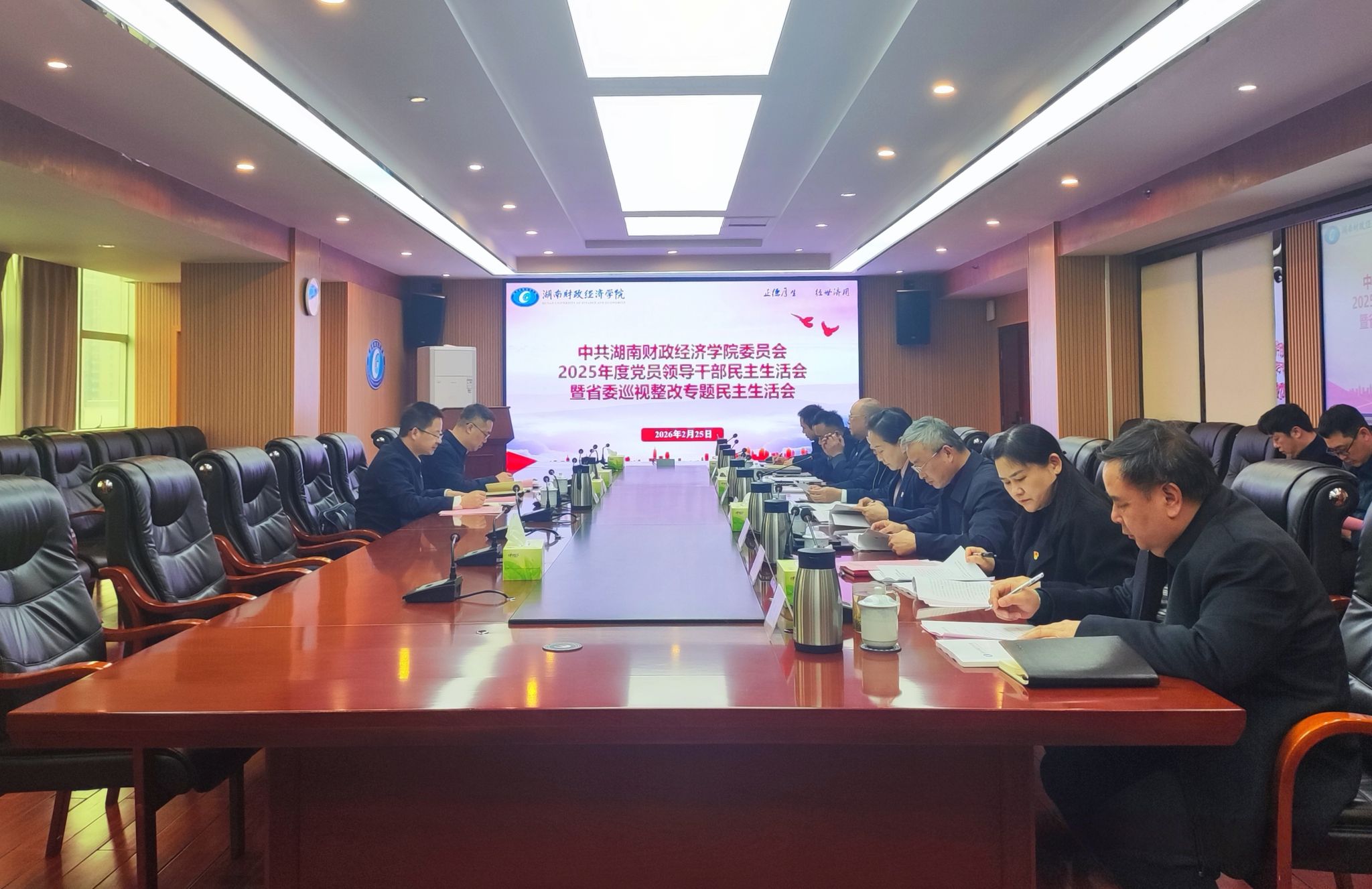 (本网讯)按照省委部署要求,2月25日,学校党委领导班子召开2025年度党员领导干部民主生活会暨省委巡视整改专题民主生活会。省委教育工委委员、省教育厅党组成员朱正华,省教育厅国际交流处处长颜丹到会指导。校党委书记易棉阳主持会议并作表态发言。校党委领导班子全体成员参加会议。会议现场学校党委将开好此次民主生活会作为重要政治任务,按照要求扎实做好各项准备工作。会前,班子成员坚持集体学习与个人自学相结合,加强理论学习,...