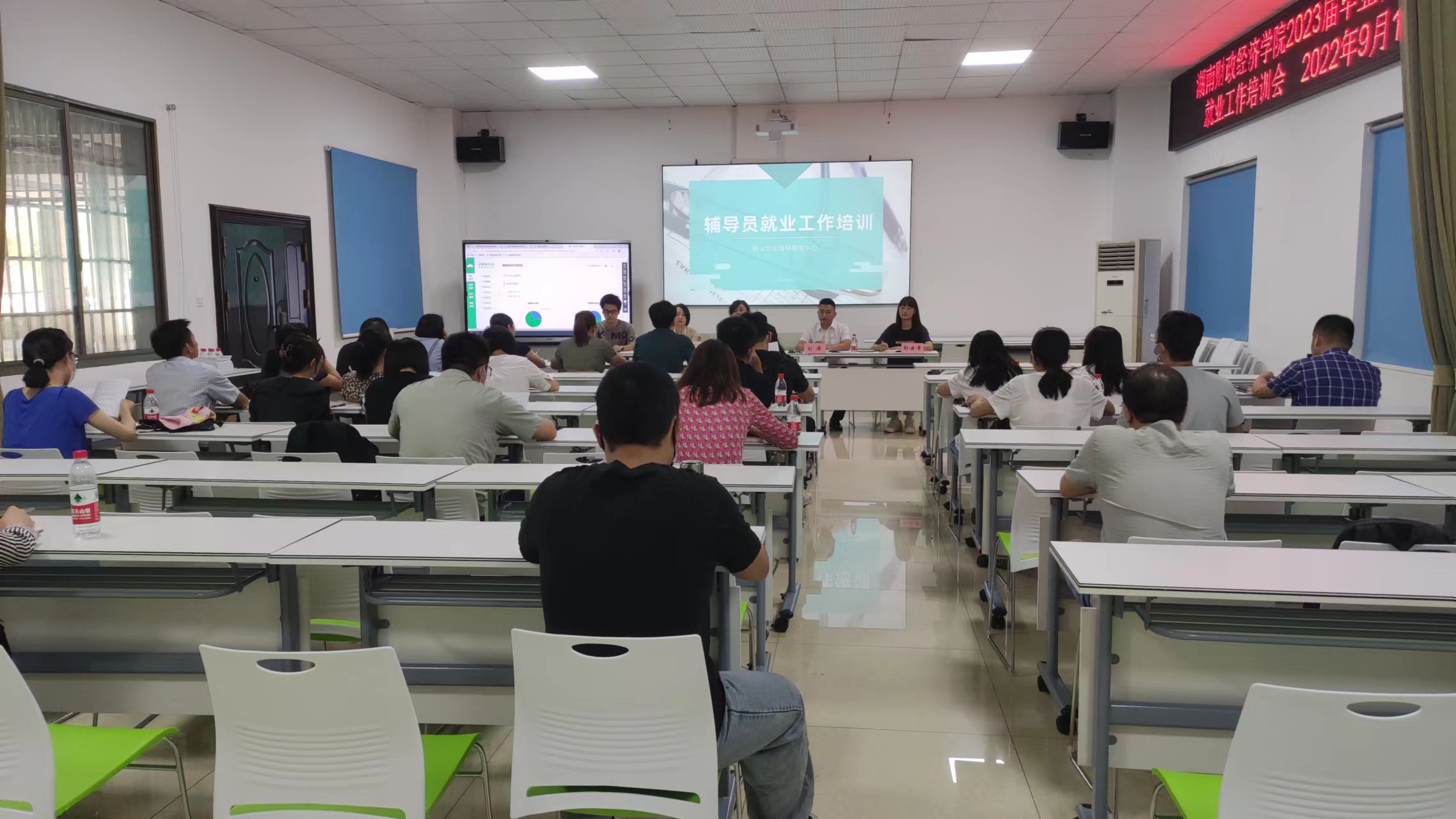 (本网讯)为加强就业工作队伍建设,提升就业指导服务水平,9月15日、20日,学校在体育馆一楼多媒体招聘室召开2023届毕业班辅导员就业工作培训会议。会议由就业创业指导服务中心主任凌飞主持,全体2023届毕业班辅导员...