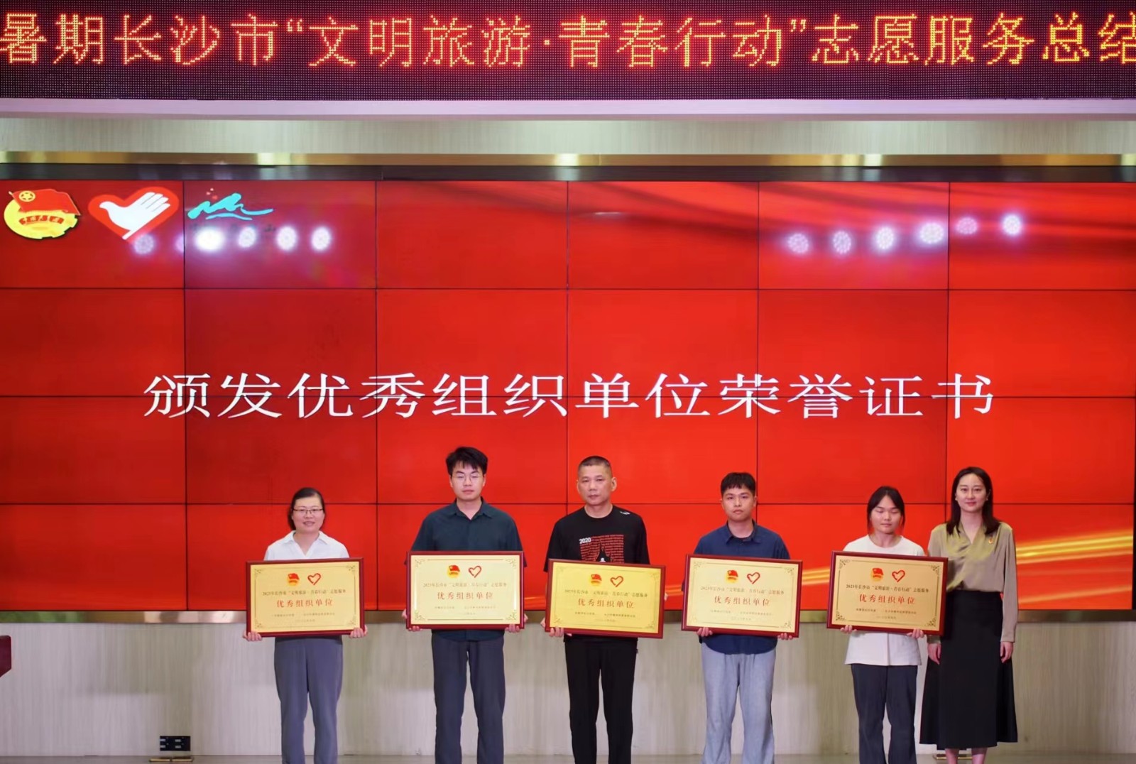 (本网讯)9月15日,2023年暑期长沙市“文明旅游·青春行动”志愿服务总结大会在长沙市青少年宫召开,主办单位对此次活动中表现突出的集体和个人进行颁奖,best365官网团委获评优秀组织单位。颁奖现场 此次活动由...