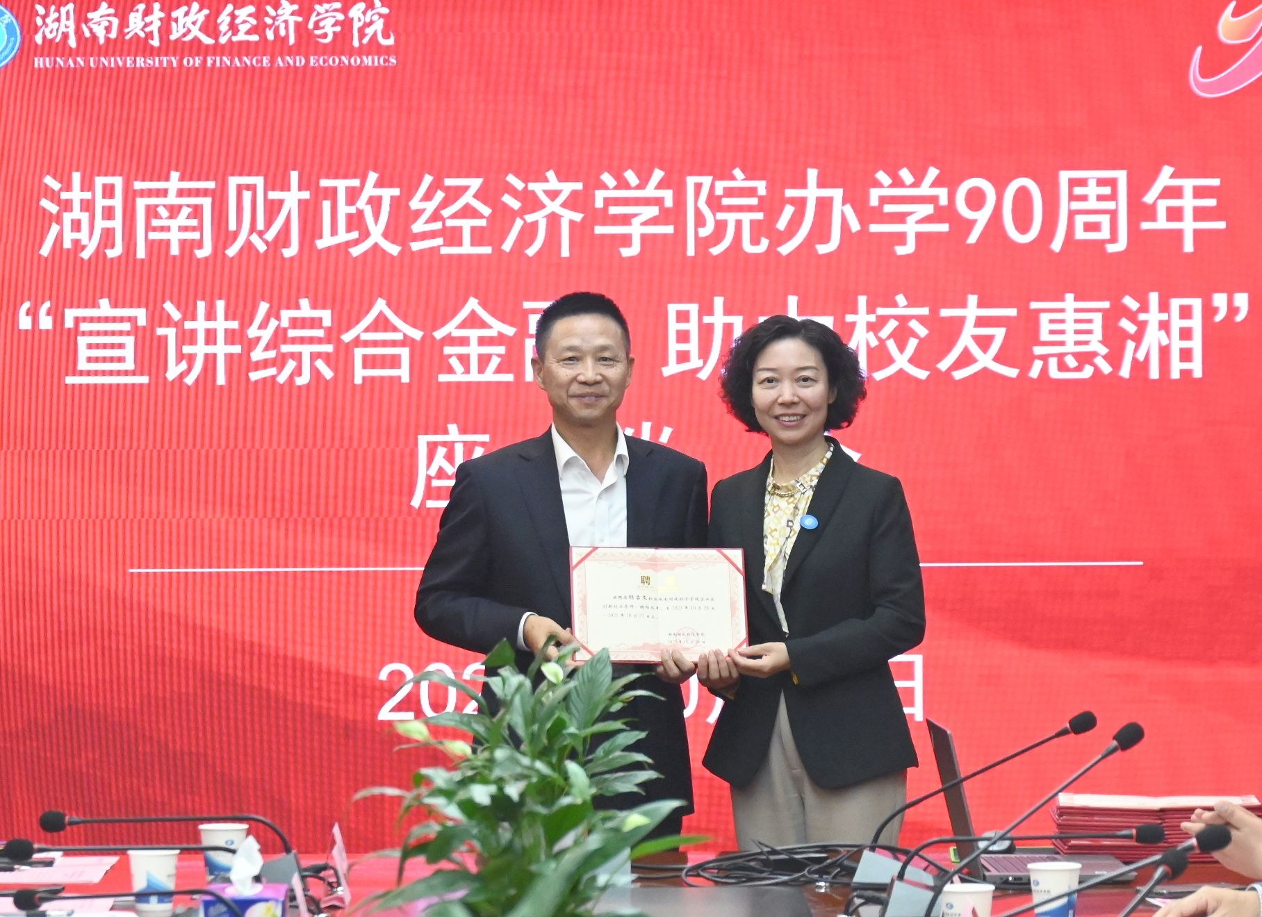 (本网讯)为贯彻落实省委十二届四次全会精神,扛起打造“三个高地”的高校责任,10月28日下午,学校召开办学90周年“宣讲综合金融 助力校友惠湘”座谈会,以浓浓“母校情”“故乡情”为纽带,邀请商界校友代表齐聚一堂,共叙情谊、共商合作、共谋发展。会议现场今年是学校办学90周年,学校聚焦湘商回归,将纪念活动与校友活动对接起来,邀请校友企业家进校园为青年学子讲就业创业故事、湖湘精神、乡村振兴、绿色产业发展、市场研判及团队管理等,...