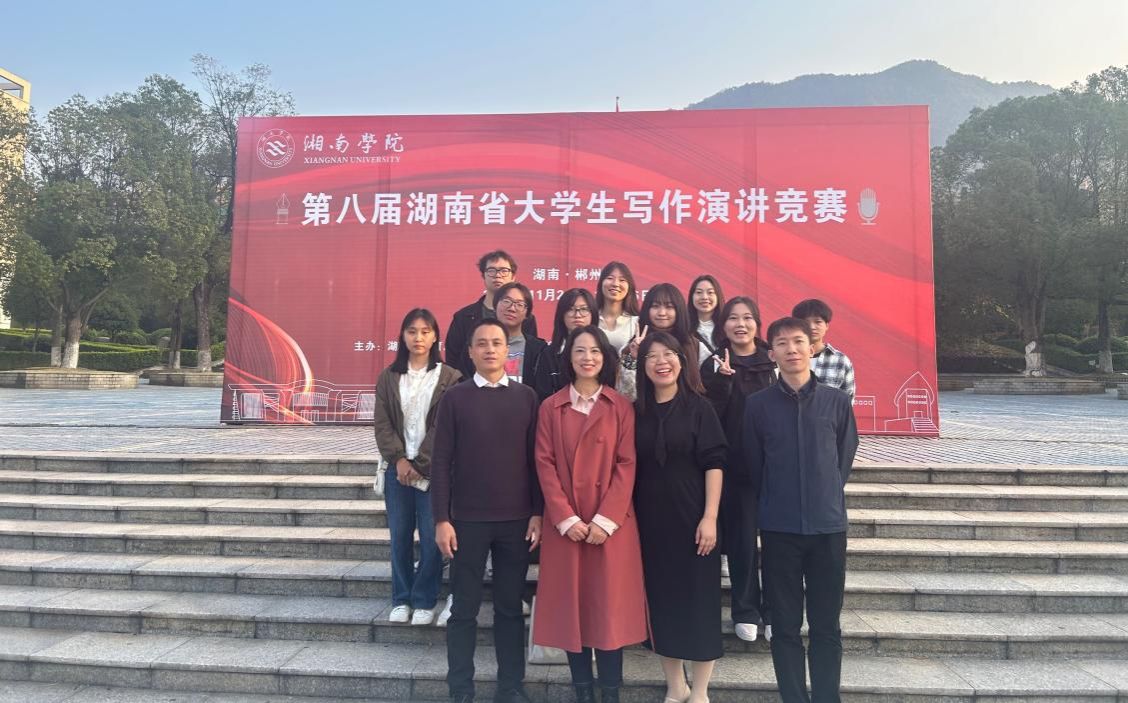 (本网讯)11月25日至26日,第八届湖南省大学生写作演讲竞赛在湘南学院举行,best365官网汉语言文学专业学生首次参赛并获得二等奖1项、三等奖4项和团体三等奖。参赛选手与指导老师合影本次竞赛分文学评论、文学创作和演讲三组类别,文学评论组与文学创作组的比赛形式为现场闭卷写作和现场答辩,演讲组的比赛形式为命题演讲和即兴演讲,共有来自全省36所高校的319名学子参赛。经过两天的激烈角逐,经评审委员会评选、审定,best365官网黄凌雅获演讲组二等奖、...