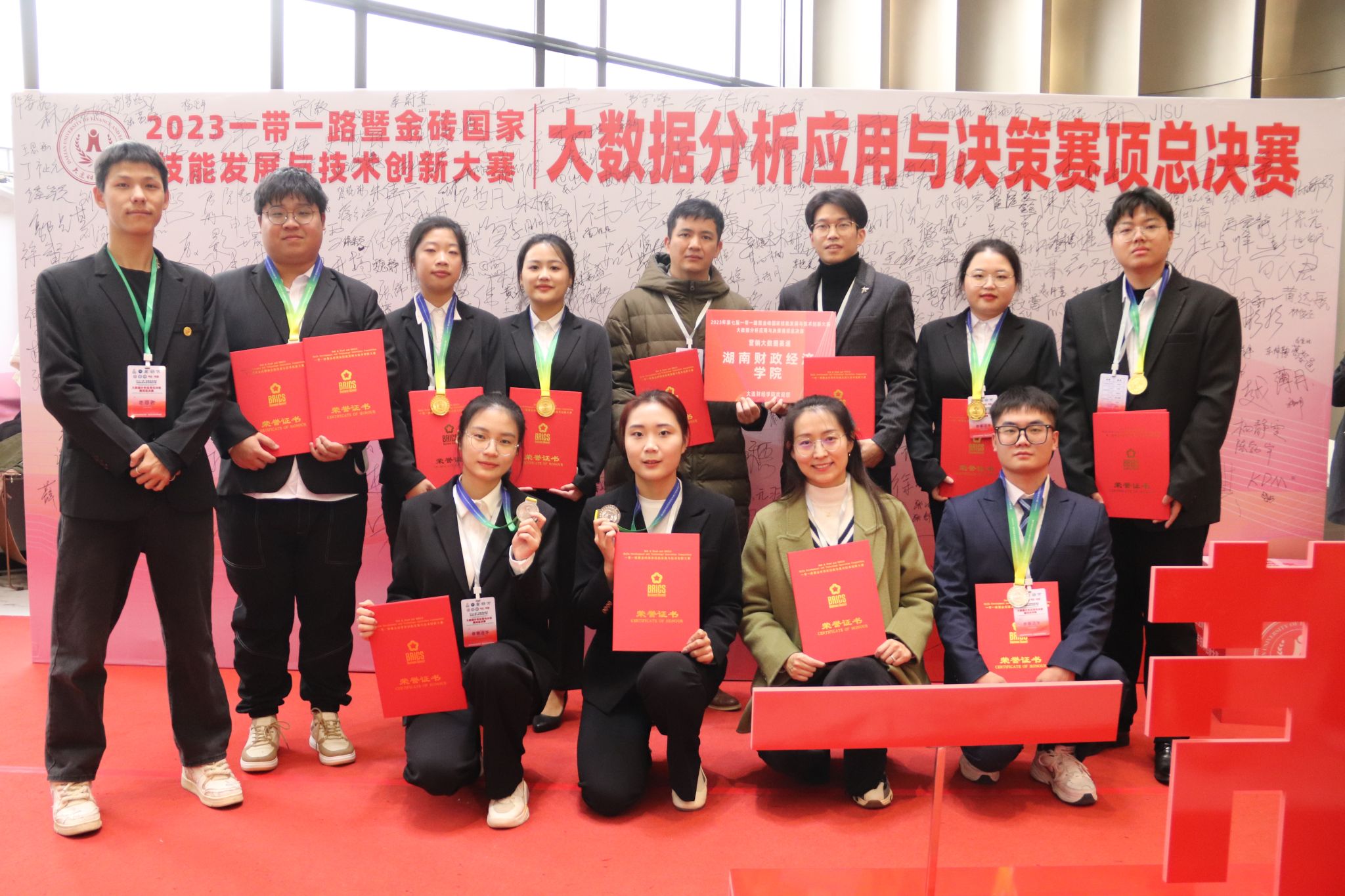 (本网讯)11月26日,2023年第七届一带一路暨金砖国家技能发展与技术创新大赛大数据分析应用与决策赛项总决赛在大连财经学院落幕,best365官网两支参赛团队分别获得人力大数据赛道一等奖和营销大数据赛道全国二等奖。best365官网参赛团队合影本次赛项由金砖国家工商理事会中方理事会、一带一路暨金砖国家技能发展国际联盟、中国科协一带一路暨金砖国家技能发展与技术创新培训中心主办,中国发明协会、教育部中外人文交流中心联合主办,金砖国家工商理事会技能发展工作组承办,...