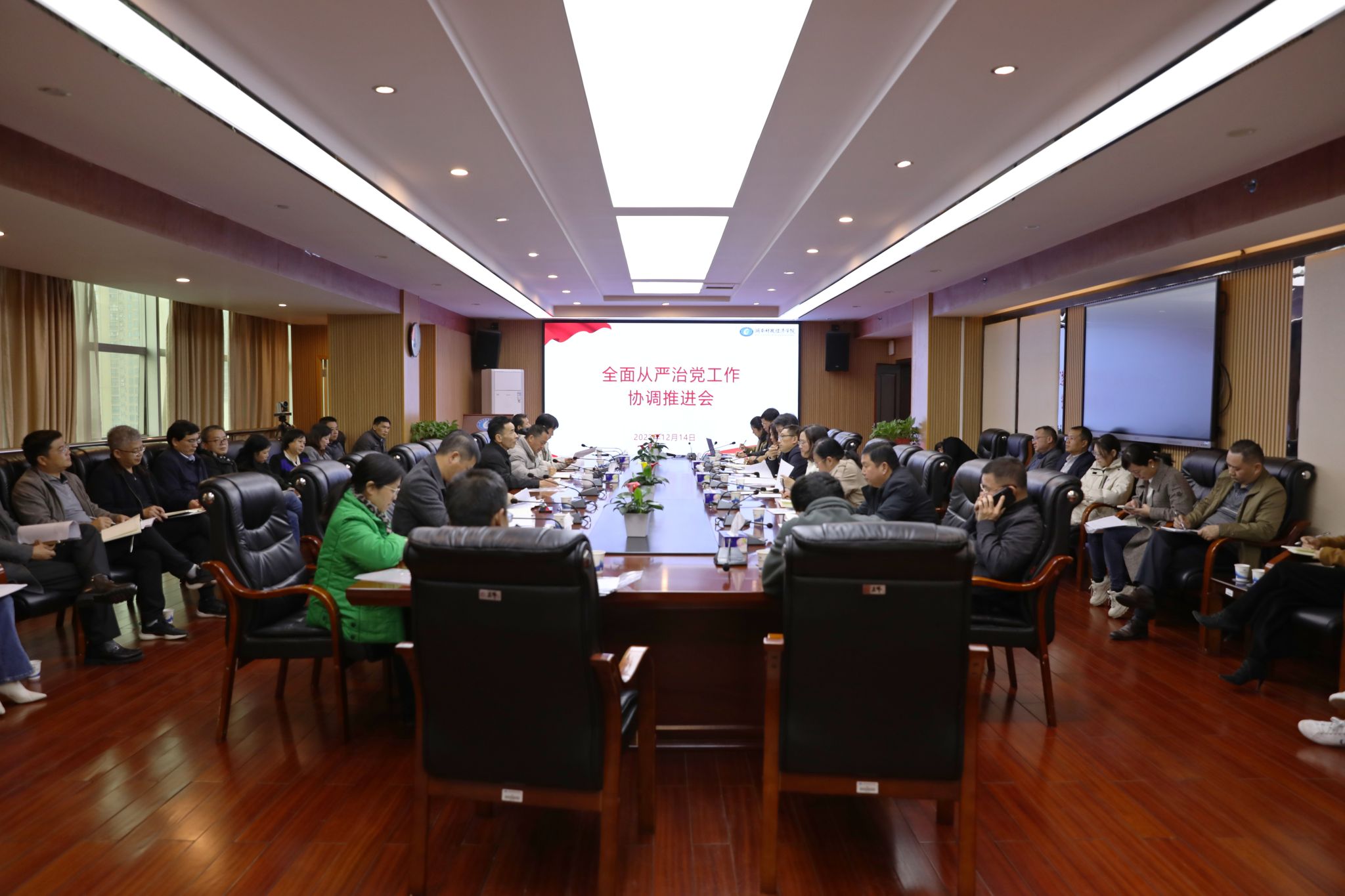 (本网讯)12月14日下午,学校在办公楼715会议室召开全面从严治党工作推进会,分解落实重点任务。校纪委书记、监察专员李雪山出席并讲话,各部门、各二级学院党组织主要负责人参加会议。会议现场会议就年度“清廉湖南建设”考核、上级“一把手”同下级“一把手”监督谈话等重点任务进行了分解,要求各二级单位密切协作配合,强化组织协调,按照任务分工,明确专人负责,确保按质按量圆满完成任务。会议对学校开展“以学谋私”专项整治工作执行及落实情况进行了通报,...