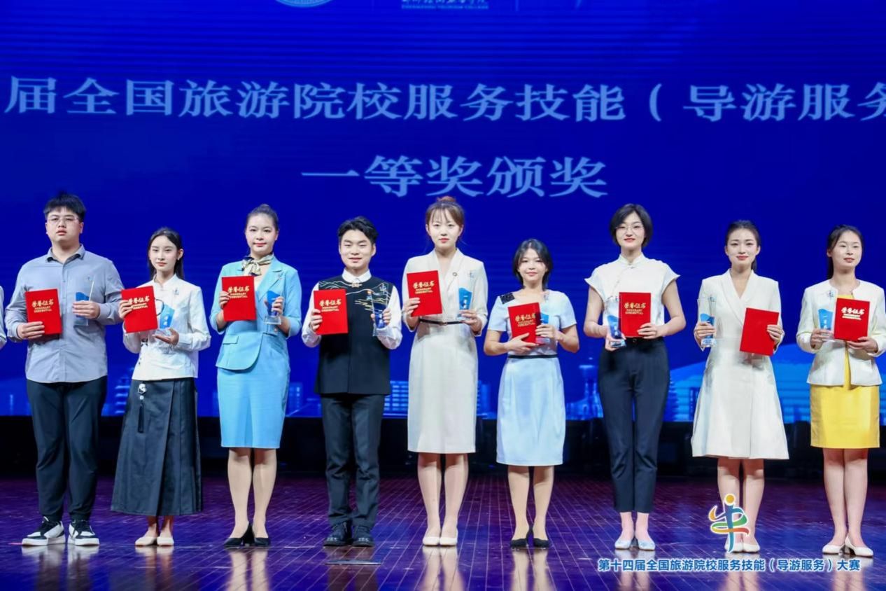 (本网讯)5月26日,第十四届全国旅游院校服务技能(导游服务)大赛在郑州旅游职业学院落下帷幕,best365官网人文与艺术学院2023级旅游管理(专升本)学生熊一郎一举斩获高等院校组普通话导游服务一等奖,这是best365官网首次组织参加该项赛事并获奖。 荣誉证书此次大赛由文化和旅游部市场管理司、中国旅游协会指导,中国旅游协会旅游教育分会主办,共有来自全国30个省(直辖市、自治区)的300余所高校、880余支队伍参赛。比赛分理论测试、导游讲解(...