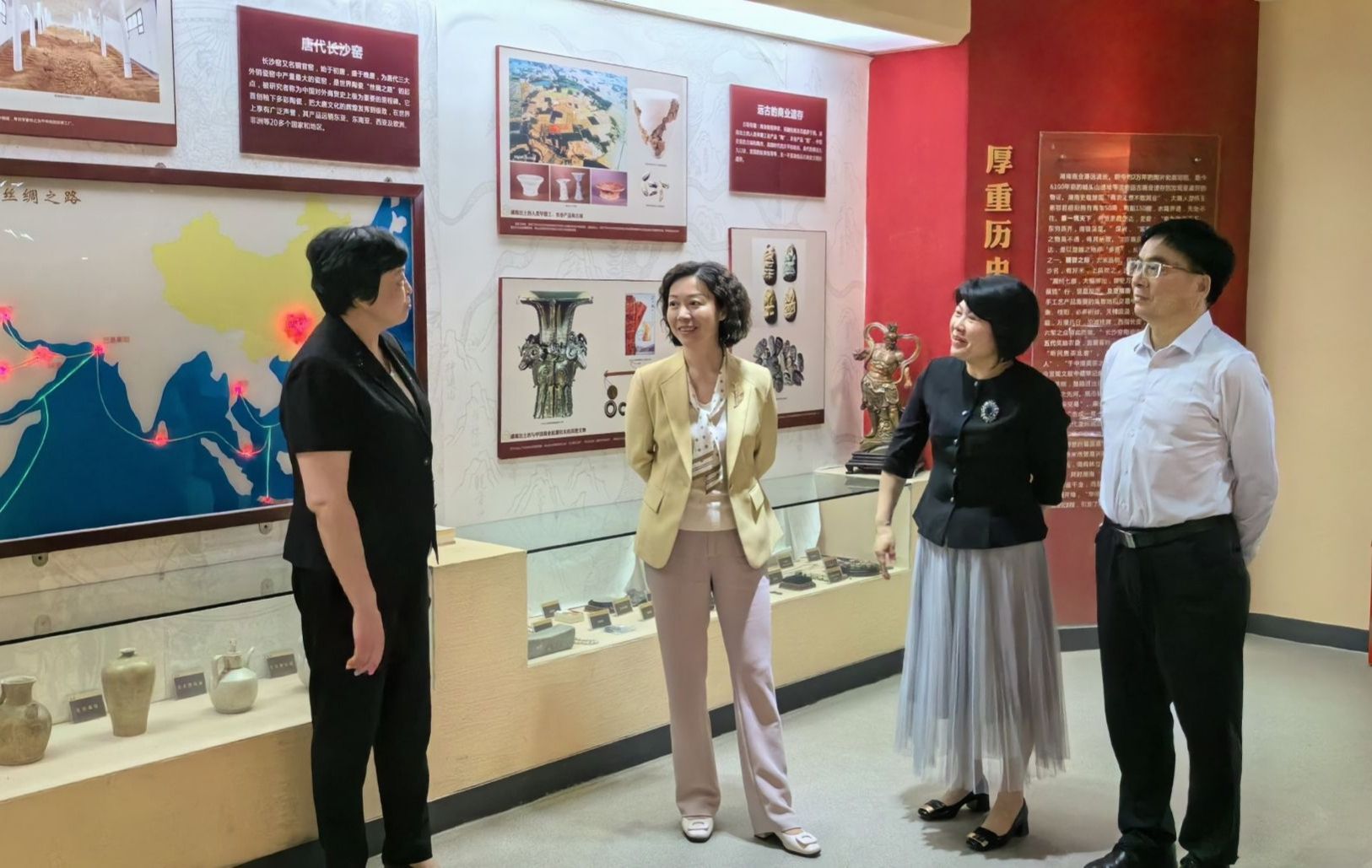 (本网讯)6月4日下午,校党委书记杨兰英、副校长郭国强一行赴湖南商务职业技术学院调研“楚怡工匠计划”试点工作实施及市场营销专业学生培育情况。党政办、学生工作部、教务处、工商管理学院主要负责人陪同。调研组在湖南商务职业技术学院校长李定珍的陪同下,参观了市场营销专业学生宿舍、学生一站式服务中心、“楚怡工匠”学生自修室、湘商文化院、思政实践教学中心,并开展了听课及教学文档、考试文档检查。参观茶艺综合实训室参观湘商文化院参观学生一站式服务中心调研组在课堂听课随后,...