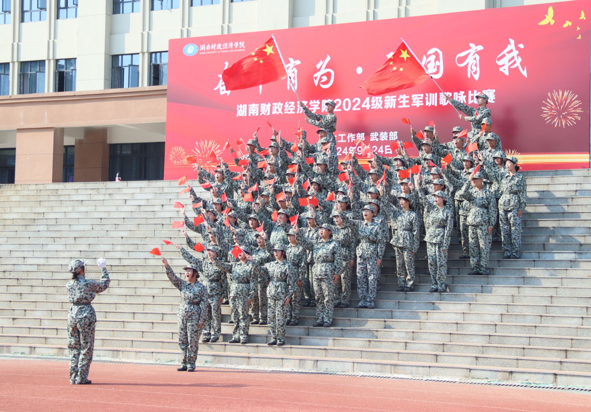 (本网讯)9月24日下午,best365官网“奋斗有为,强国有我”2024级新生军训歌咏比赛决赛在雷锋校区田径场举行。经过初赛选拔后,共有13支连队脱颖而出进入决赛,各连队演唱曲目包括一首必选曲目——校歌《财苑之歌》和一首自选红歌。比赛现场各连队英姿飒爽,意气风发,以饱满的状态和真挚的情感放声歌唱,将朗诵、舞蹈、拳术等多种表演形式融入《祖国不会忘记》《唱支山歌给党听》等曲目演绎中,抒发了他们的爱党爱国爱校之情,生动展现了湖财学子朝气蓬勃、...