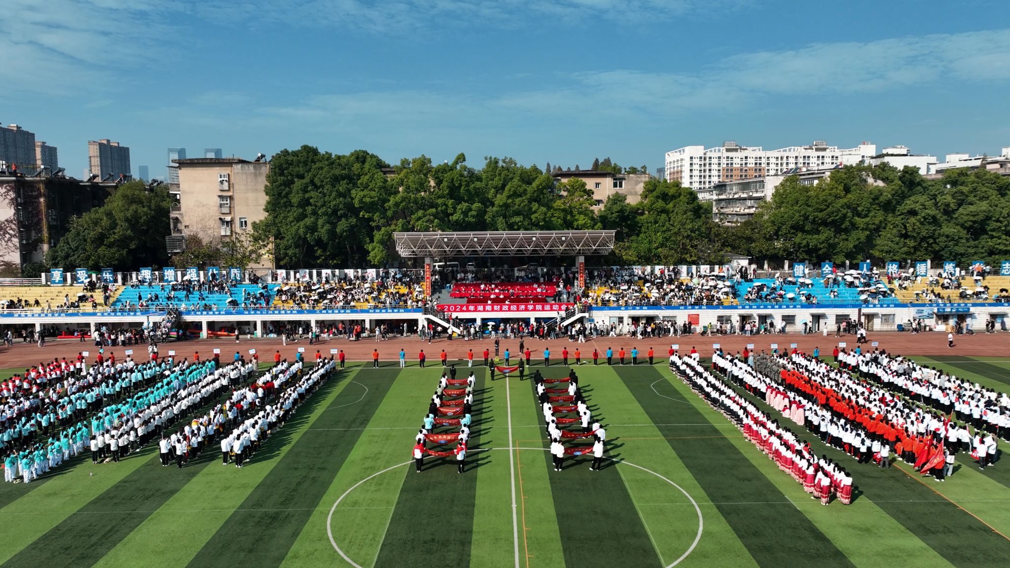 (本网讯)10月25日至26日,best365官网运动会在主校区田径场举行,近三千名师生在体育大舞台上尽展健康自信之美。开幕式现场 邓柳/摄校领导、各单位负责人等出席了25日上午的开幕式,校党委书记杨兰英宣布本届运动会开幕,校长刘长庚致开幕辞,副校长郭国强主持开幕式。 杨兰英宣布运动会开幕 何妍/摄本届运动会开幕式延续往年传统,采用入场仪式与体育节目表演相结合的形式。国旗、彩旗方阵气宇轩昂、步履铿锵,诠释湖财体育精神。来自全校14个二级学院的入场表演活力四射、...