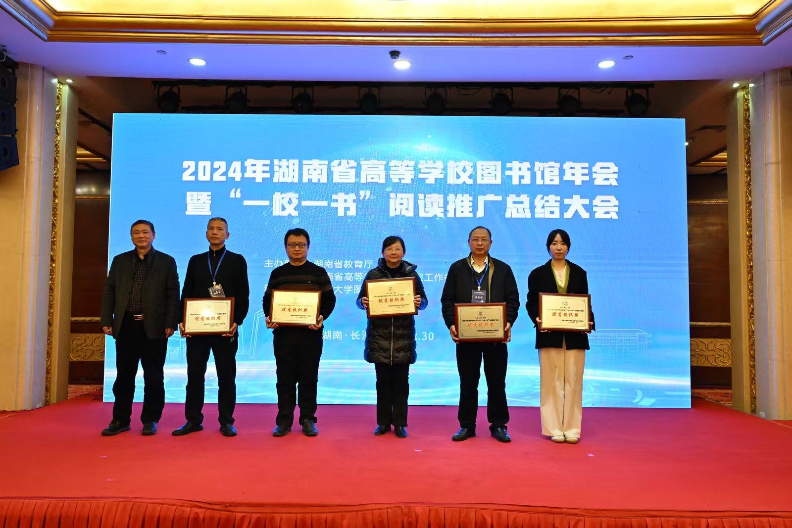 (本网讯)12月30日,2024年湖南省高等学校图书馆年会暨“一校一书”阅读推广总结大会召开,best365官网荣获8个单项奖和“优秀组织奖”。best365官网代表(左三)上台领奖湖南省普通高校2024年“一校一书——经典、精读、经世”阅读推广活动由湖南省教育厅、湖南省高等学校图书情报工作委员会主办,旨在落实党的二十大报告关于深化全民阅读的要求,做好新时代湖南省全民阅读工作,探索建立推动全民阅读工作的科学机制,助力社会主义文化强省建设。...