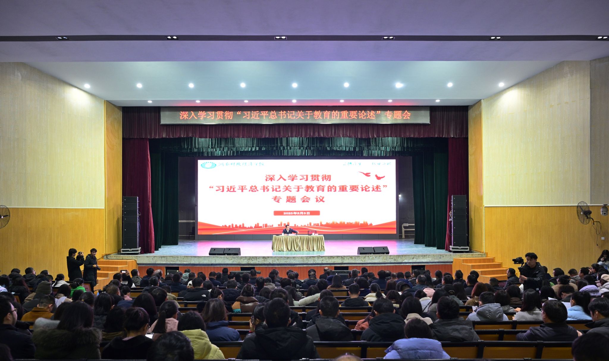 (本网讯)3月5日下午,学校召开深入学习贯彻习近平总书记关于教育的重要论述专题会。校党委书记易棉阳作专题辅导报告,全体校领导,各职能部门负责人、二级学院党政负责人,全体教授、博士参加会议。校党委副书记苏玲主持会议。会议现场党的十八大以来,习近平总书记从建设社会主义现代化强国、实现中华民族伟大复兴的战略高度出发,对新时代教育事业发展进行了系统谋划,系统论述了新时代党领导教育事业发展的战略价值、本质要求和实践路径,...