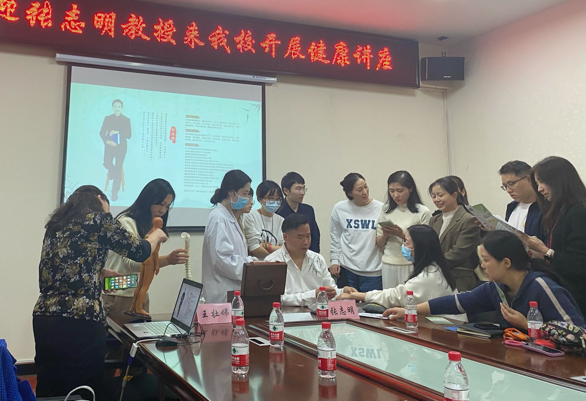 (本网讯)为普及校园健康文化,提高学校教职员工的健康意识和自我保健能力,11月9日下午,校工会邀请湖南省胸科医院疼痛康复科学科带头人、副主任医师张志明在学校办公楼4楼学术交流会议室作“脊椎健康的保养策略”专题讲座。校工会副主席兼女工委主任王牡娣主持讲座。讲座现场张志明结合日常生活中的真实案例,运用丰富的工作经验和医学知识,生动地讲解了有关颈椎和腰椎的保健知识,与老师们的谈笑间诠释着生命与健康的奥秘。为使老师们能尽可能地避免颈腰病的困扰,...