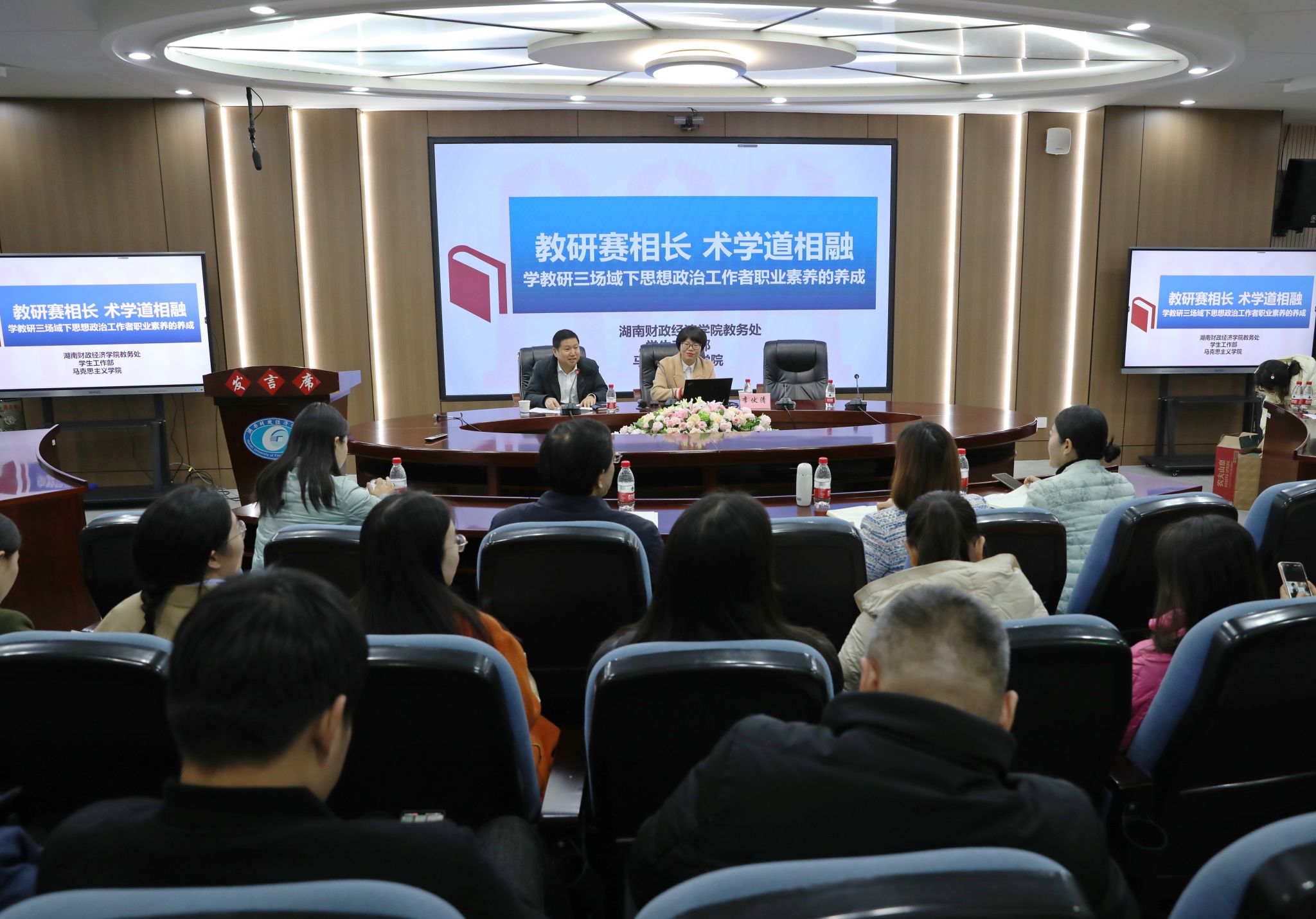 (本网讯)12月14日上午,湘潭大学马克思主义学院党委副书记李伏清教授在主校区办公楼五楼视频会议室作题为“教研赛相长 术学道相融——学教研三场域下思想政治工作者职业素养的养成”的学术讲座。讲座由学生工作部部长欧阳海峰主持,学校全体辅导员、思政课教师到场聆听。讲座现场讲座中,李伏清针对育人提出“一核两主三三制”的教学理念,即高校要紧紧围绕“立德树人”根本任务,聚焦“两个群体”发展,统筹“三支队伍”,抓好“...