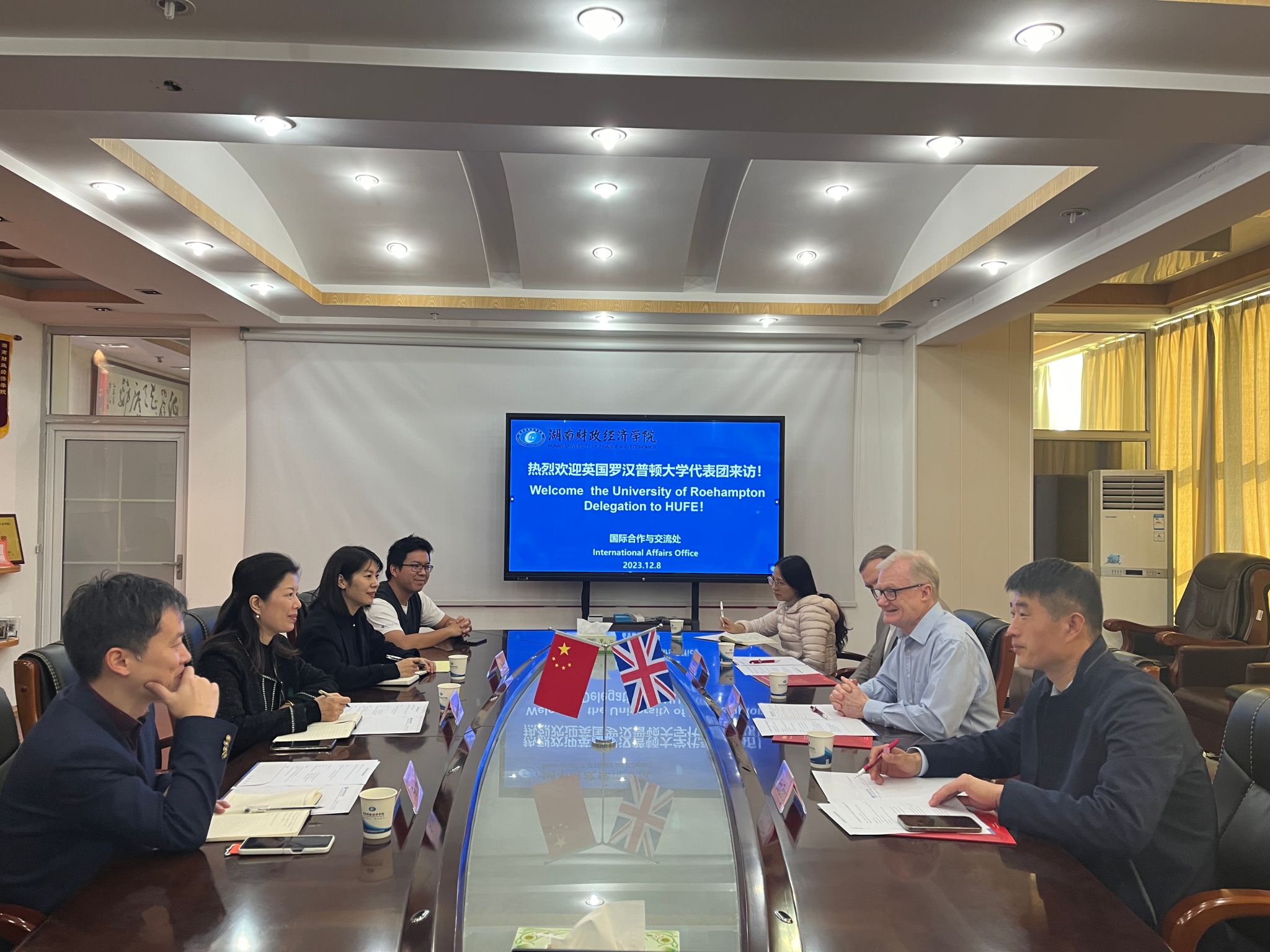 (本网讯)12月8日,英国罗汉普顿大学商法学院本科课程项目负责人Stephen O’Regan教授率团来校访问。厚生国际教育学院直属党支部书记肖平飞、国际合作与交流处副处长傅佳以及相关负责同志参加座谈会。座谈会现场 会上,傅佳详细介绍了学校中外合作办学项目运行情况。Stephen O’Regan介绍了罗汉普顿大学教学课程及教学安排。双方进行了友好深入交流,一致希望继续推进现有合作办学项目,并进一步开展师生互访、教学研究、人文交流等方面的交流合作。...