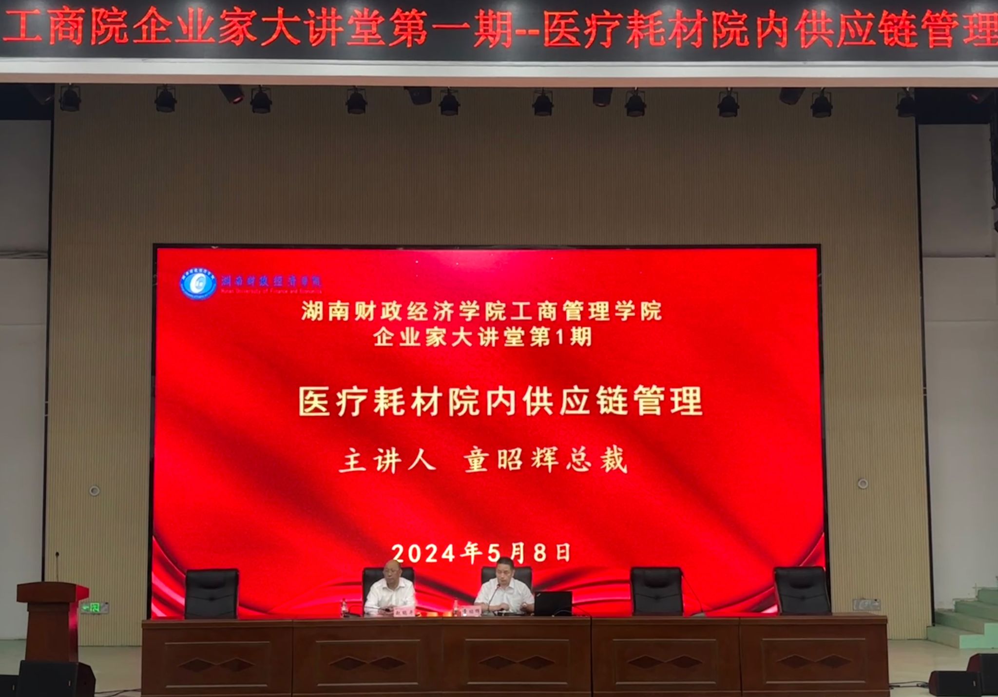 (本网讯)5月8日下午,工商管理学院企业家大讲堂首期在雷锋校区学术报告厅开讲,第一期主讲人德荣医疗科技股份有限公司SPD事业群总裁童昭辉以“医疗耗材院内供应链管理”为主题作分享。讲座由副校长赵鹤平主持,工商管理学院院长杨鹏、科研办主任及2023级全体学生到场聆听。讲座现场童昭辉深入剖析了当前医疗器械管理面临的挑战和机遇,详细介绍了SPD医院物流管理平台及其在医疗耗材管理中的应用。他指出,SPD管理模式通过整合医院内外资源,...