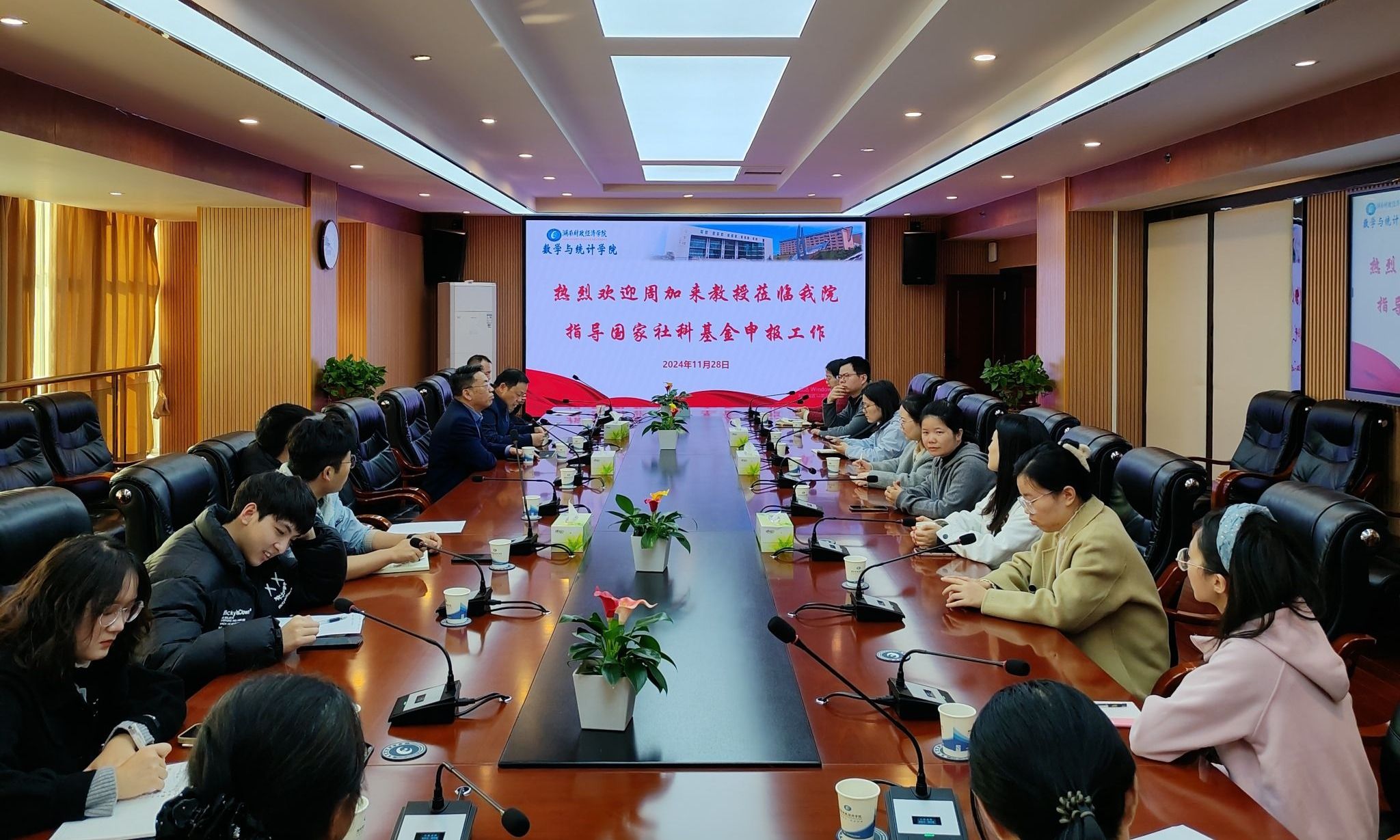 (本网讯)11月28日下午,数学与统计学院在办公楼715会议室举办国家社科基金课题申报指导讲座,安徽财经大学原党委常委、副校长周加来教授应邀到会指导。会议由学院院长尹向飞主持,学院青年博士参会。 讲座现场周加来结合自身丰富的申报及评审经验,就国家社科基金的申报与评审程序、论证与评审要点等进行了详细阐述。他强调,选题是决定项目申请成功的关键,是评审专家首要关注点,要坚持问题导向,突出课题的前瞻性、指导性、理论性、...