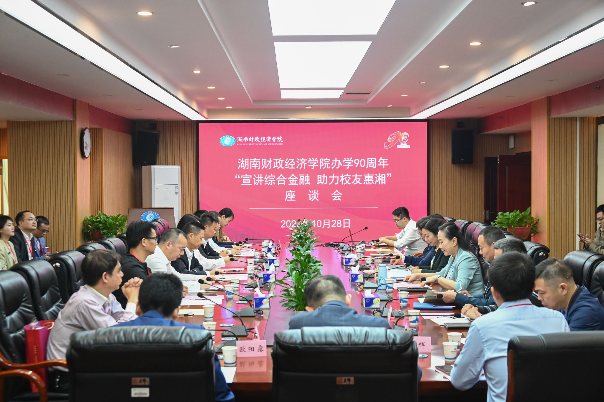 (本网讯)为贯彻落实省委十二届四次全会精神,扛起打造“三个高地”的高校责任,10月28日下午,学校召开办学90周年“宣讲综合金融 助力校友惠湘”座谈会,以浓浓“母校情”“故乡情”为纽带,邀请商界校友代表齐聚一堂,共叙情谊、共商合作、共谋发展。