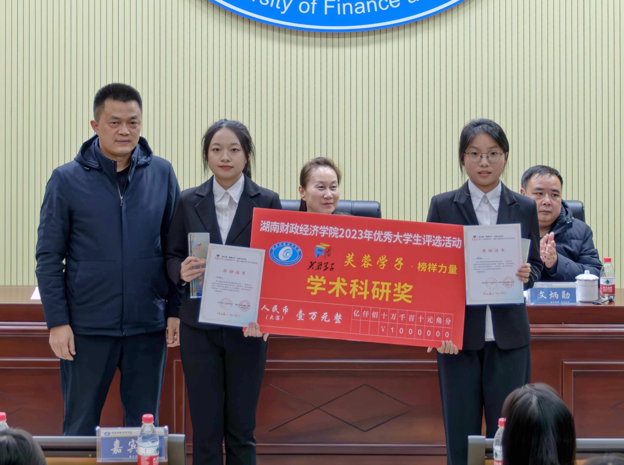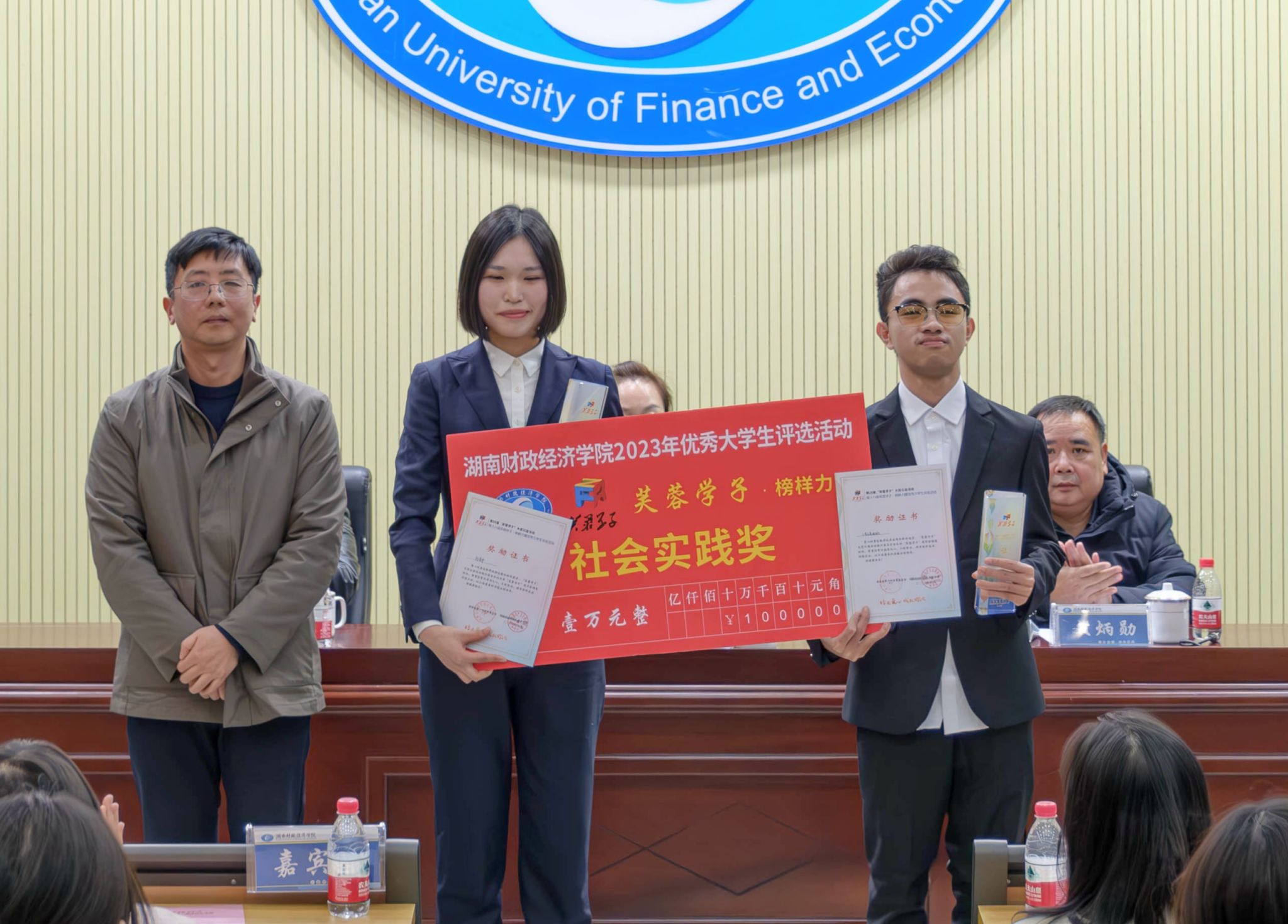 文炳勋宣读了《关于表彰第十八届“芙蓉学子·榜样力量”优秀个人(团队)的决定》。人文与艺术学院赖雨汀和法学与公共管理学院周超荣获芙蓉学子·道德风尚奖,财政金融学院曾依琳和工商管理学院黄关超荣获芙蓉学子·自强不息奖,外国语学院何银和陈宇璐荣获芙蓉学子·公益行动奖,小易志愿服务队和法学与公共管理学院刘清华荣获芙蓉学子·社会实践奖,学术梦之队和亲慕团队荣获芙蓉学子·学术科研奖。