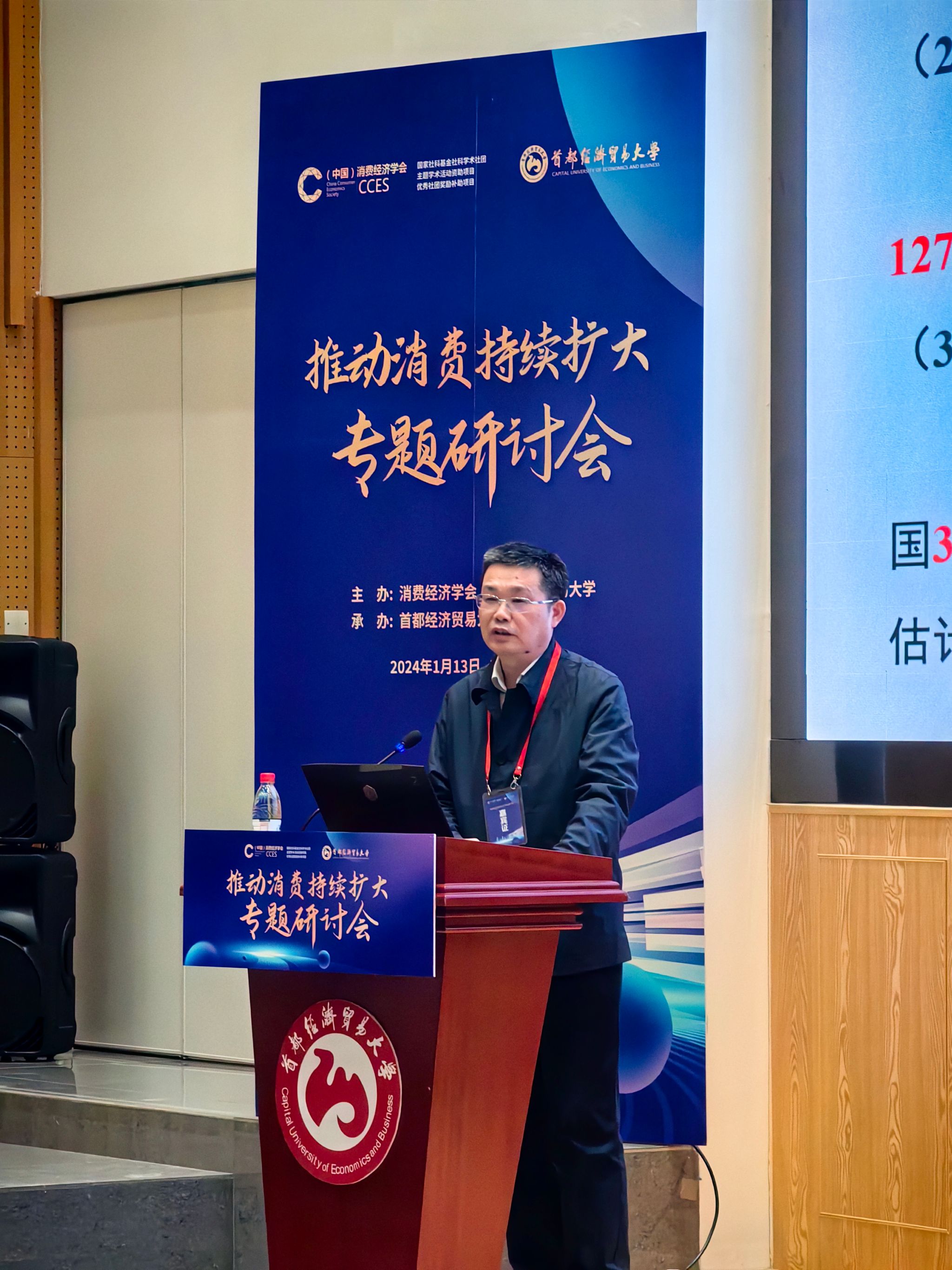 (本网讯)1月13日,“推动消费持续扩大”专题研讨会在首都经济贸易大学举行,30余位来自全国各地高校和科研院所的专家学者参会,共同探讨消费经济领域的重大理论和实践问题。best365官网校长刘长庚应邀主持活动,并在会上作“中国农村家庭消费潜力研究”主题发言。