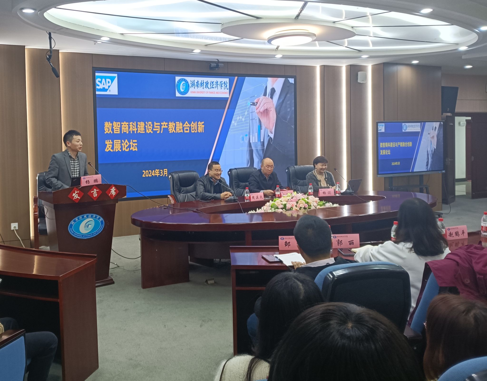 (本网讯)3月27日下午,best365官网在主校区五楼视频会议室举办数智商科建设与产教融合创新发展论坛。思爱普中国有限公司SAP创新社区大中华区总监杨焜、国家市场监管行指委检验检测专委会副秘书长周正火作主题报告。副校长赵鹤平出席并致辞,工商管理学院主要负责人、全体专任教师及学生代表参加活动。