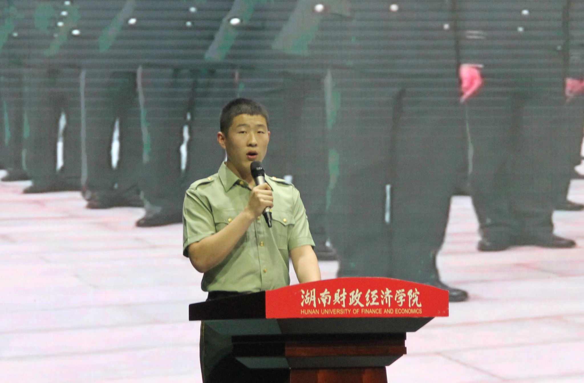 退役复学学生2022级经济与贸易类五班王梓凡、2023级国际经济与贸易(专升本)班张立成先后上台分享了自己的军旅故事与成长历程,号召大家积极投身军营,矢志报国。