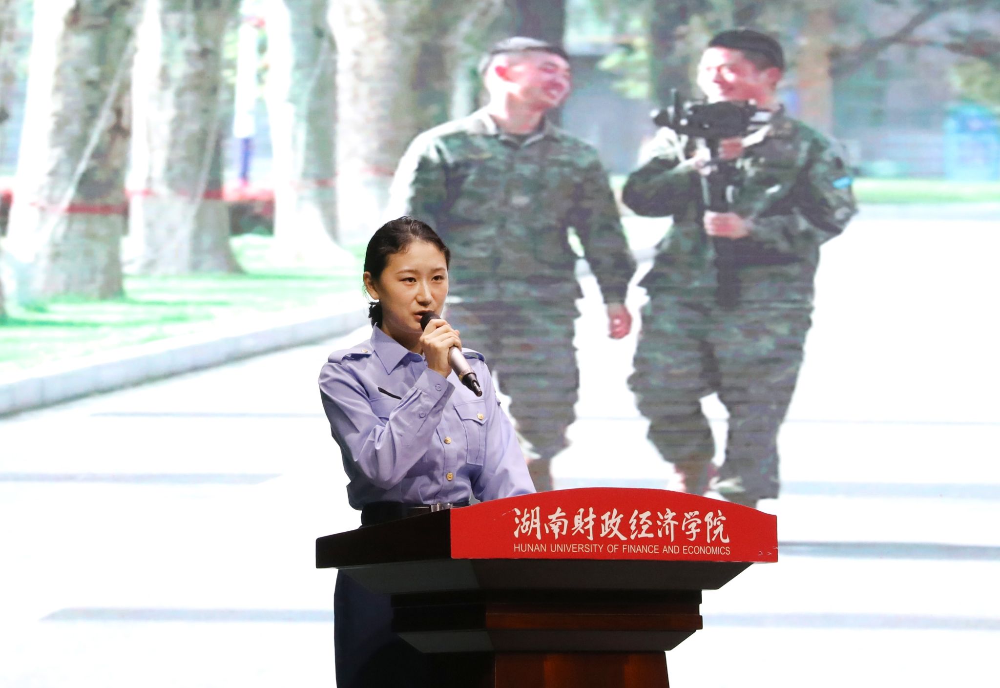 苏玲对全体学生提出三点希望:一是赓续红色血脉、厚植爱国情怀;二是谨记居安思危,砥砺奋进不息;三是秉持初心不改,投身国防建设。她谆谆寄语勉励湖财学子将赤诚爱国之心化为拳拳报国之行,主动投身到军营中磨砺人生、施展才华,在强国强军的伟大实践中实现人生梦想。