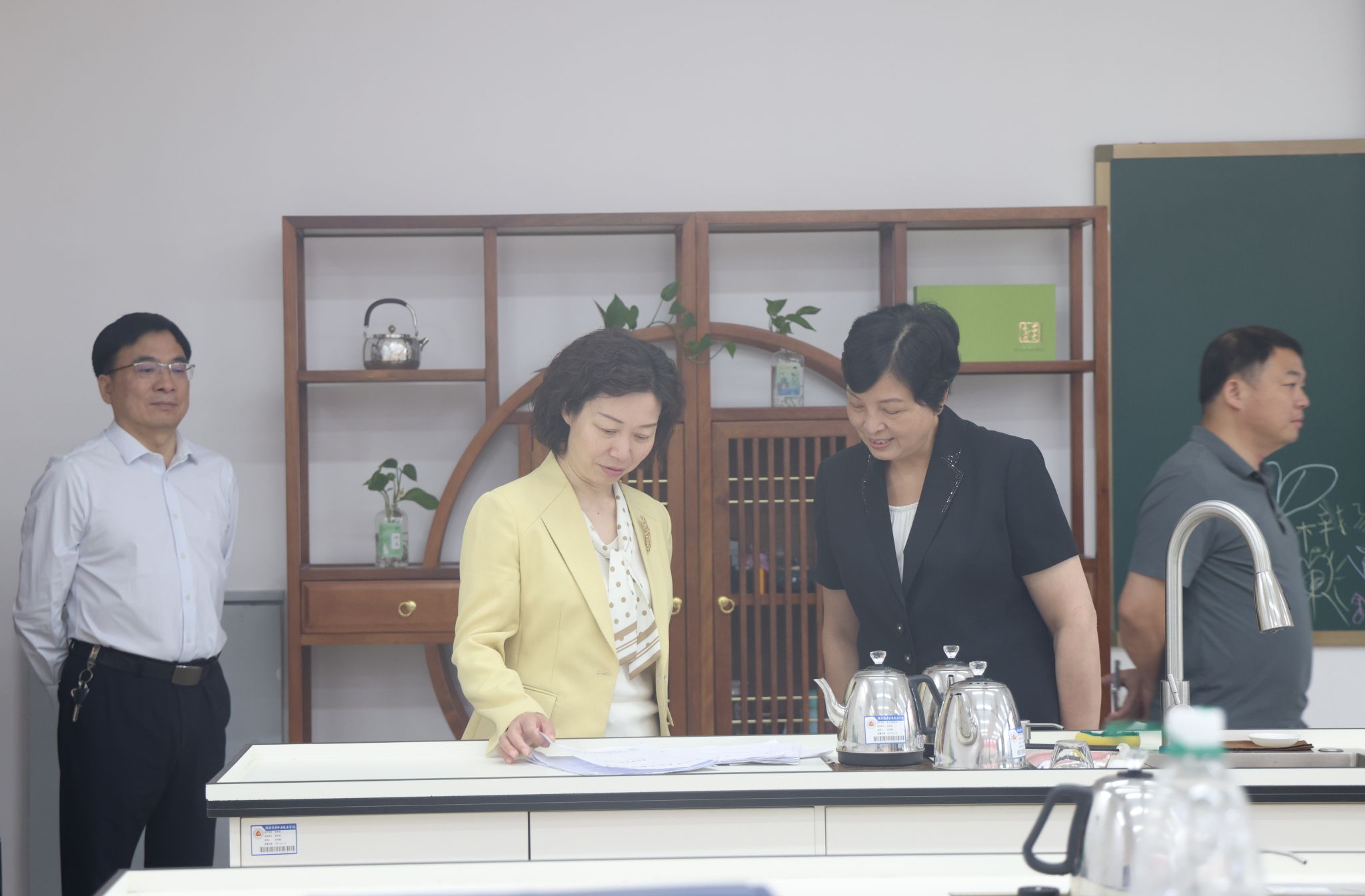 调研组在湖南商务职业技术学院校长李定珍的陪同下,参观了市场营销专业学生宿舍、学生一站式服务中心、“楚怡工匠”学生自修室、湘商文化院、思政实践教学中心,并开展了听课及教学文档、考试文档检查。