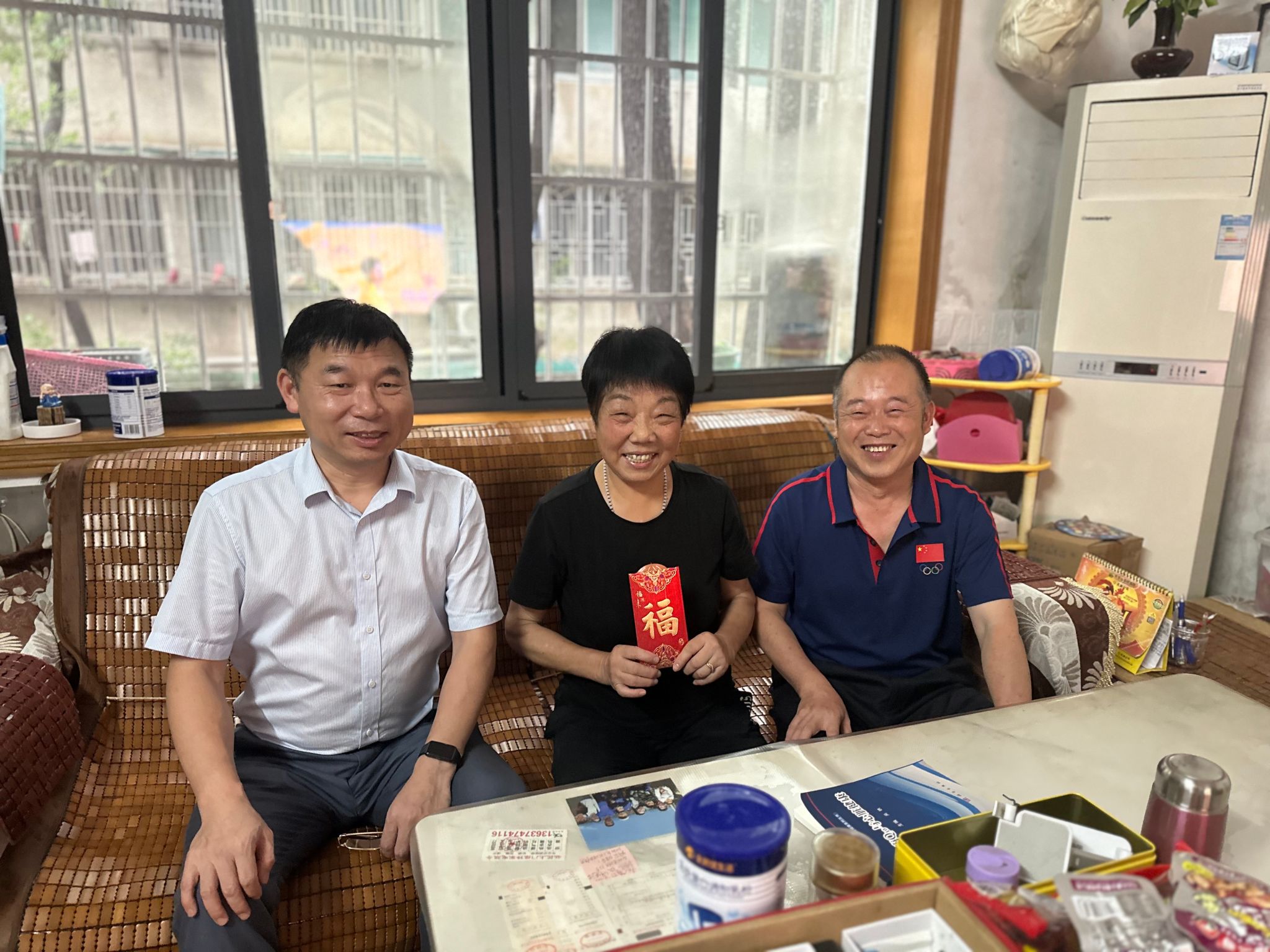 校纪委书记李雪山(右)慰问老党员杨淑银(中)