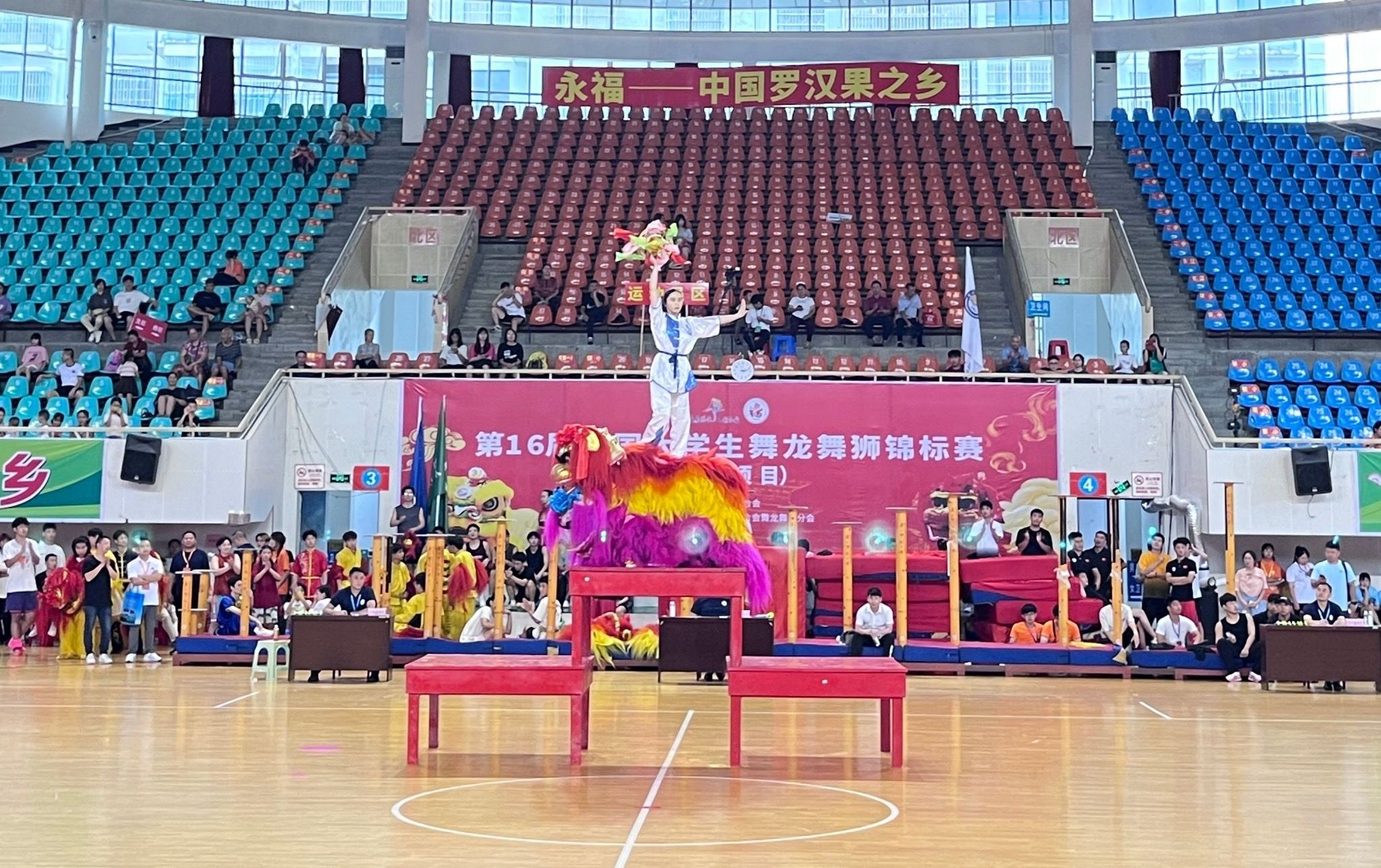 经过五个月的艰苦备战训练,best365官网舞龙舞狮队组织10名男子运动员和5名女子运动员参赛。比赛现场,best365官网舞龙舞狮队身着华丽狮装,手持沉重狮头,与搭档默契配合,将北狮的威猛与灵动展现得淋漓尽致。其中,女子北狮队是首次参赛,其表演却格外引人注目,她们临场不惧,默契配合,在竞赛表演中不仅完成了高难度的跳跃、翻滚等动作,还巧妙地融入了舞蹈元素,使得整个表演既具有传统韵味又不失新颖的现代感,特别是在表演“高台前滚翻”等经典难度动作时,她们更是将狮子的神态和气势展现得栩栩如生,让现场观众大饱眼福,也获得了评委们的高度评价。