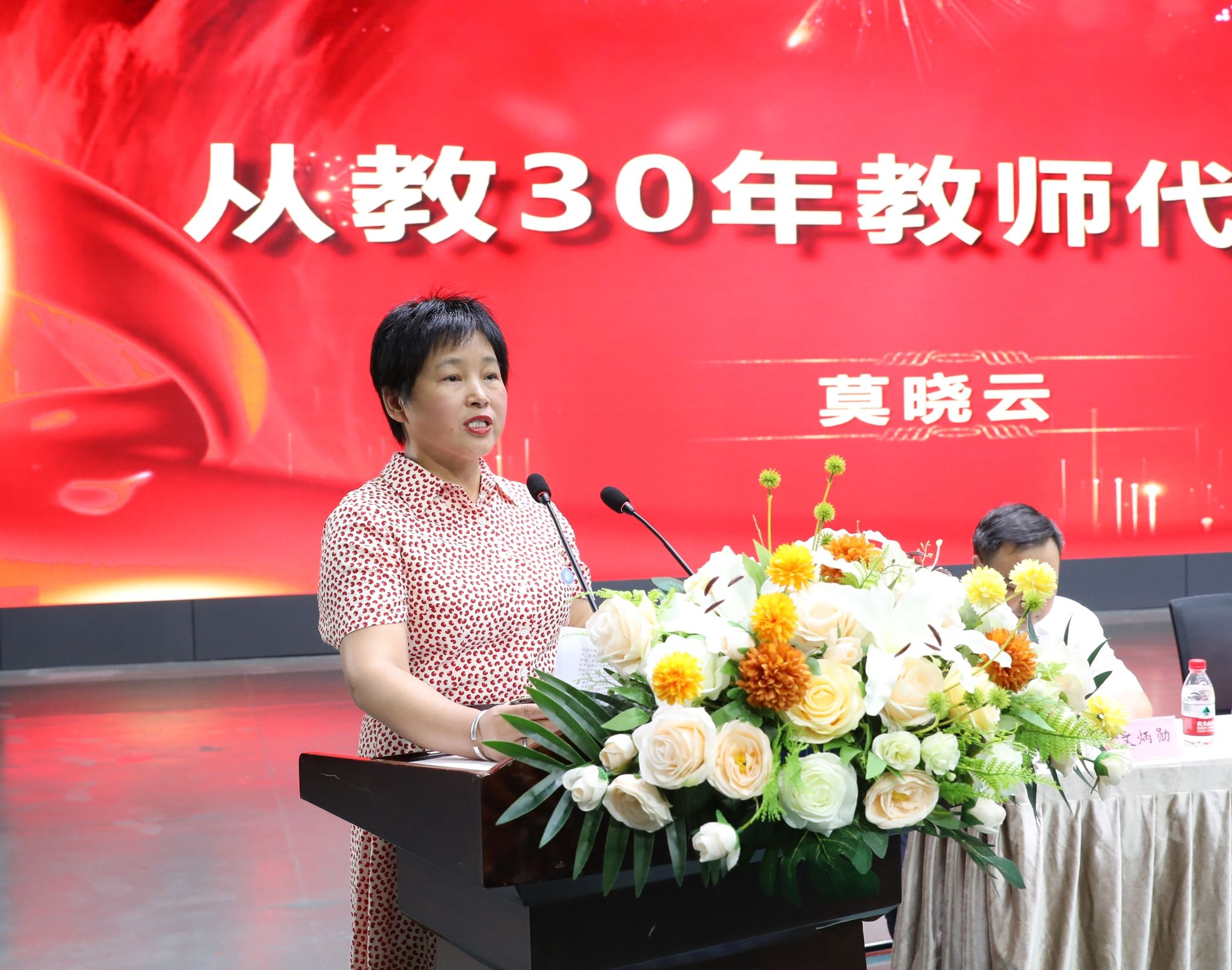 从教三十年教师代表莫晓云发言 何妍/摄