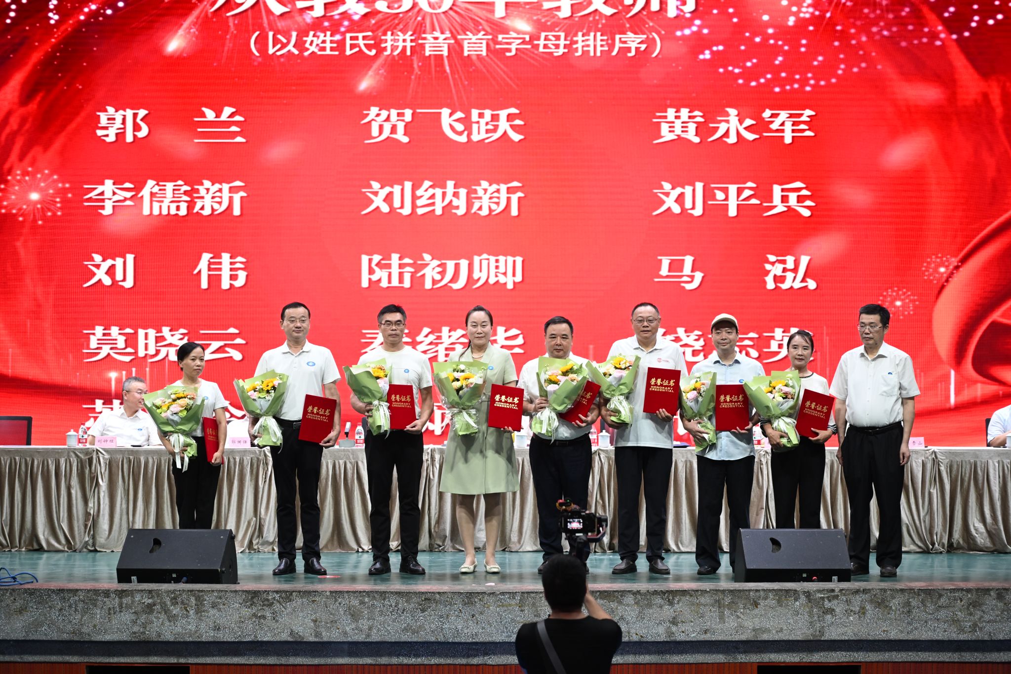 表彰大会上,副校长赵鹤平宣读了《关于对“从教三十年教师”进行荣誉表彰的决定》。校长刘长庚向学校从教三十年的教师颁发荣誉证书。会场响起热烈的掌声,与会人员向在教育战线上辛勤奋斗三十年的教师致以最崇高的敬意和最热烈的祝贺。