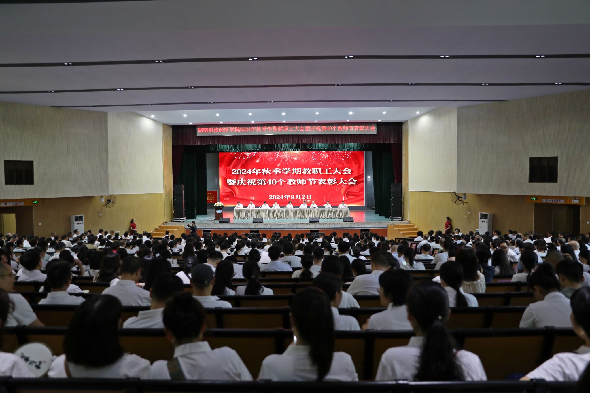 (本网讯)9月2日上午,学校在大礼堂召开2024年秋季学期教职工会议暨庆祝第40个教师节表彰大会,全面总结回顾上半年工作,安排部署新学期各项工作任务,表彰先进,动员全校上下进一步统一思想、乘势而上、踔厉奋发,推动学校教育事业再上新台阶。全体校领导、全校教职工参加会议。校党委副书记苏玲主持会议。